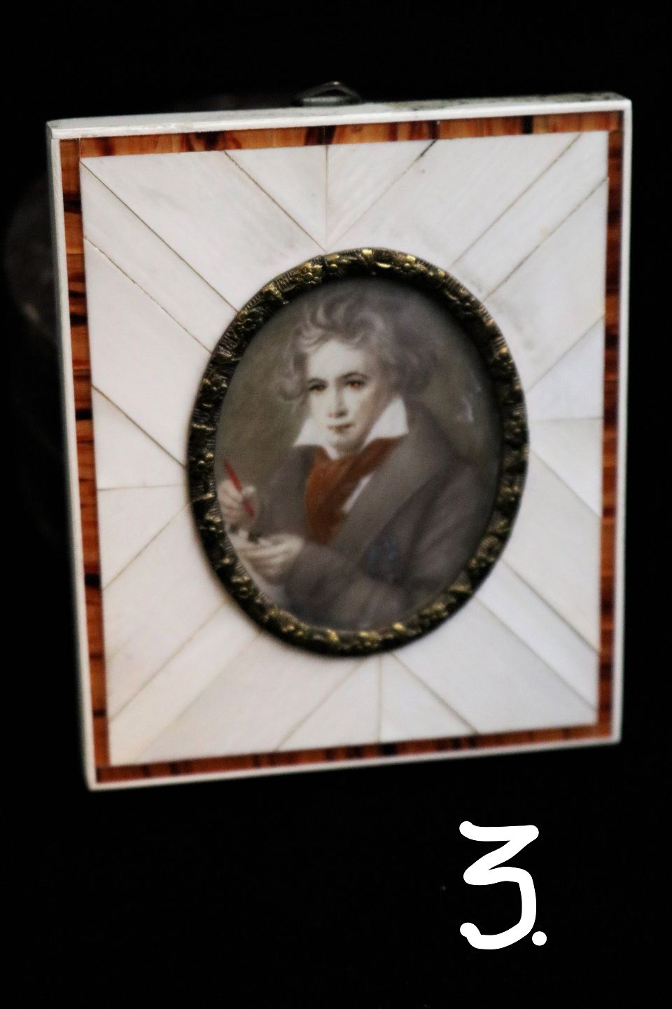 Antik Miniaturemaleri malet på elfenben af Beethoven. Måler : 8,7x7,2cm. Emne nummer: Miniaturemaleri på elfenben 1