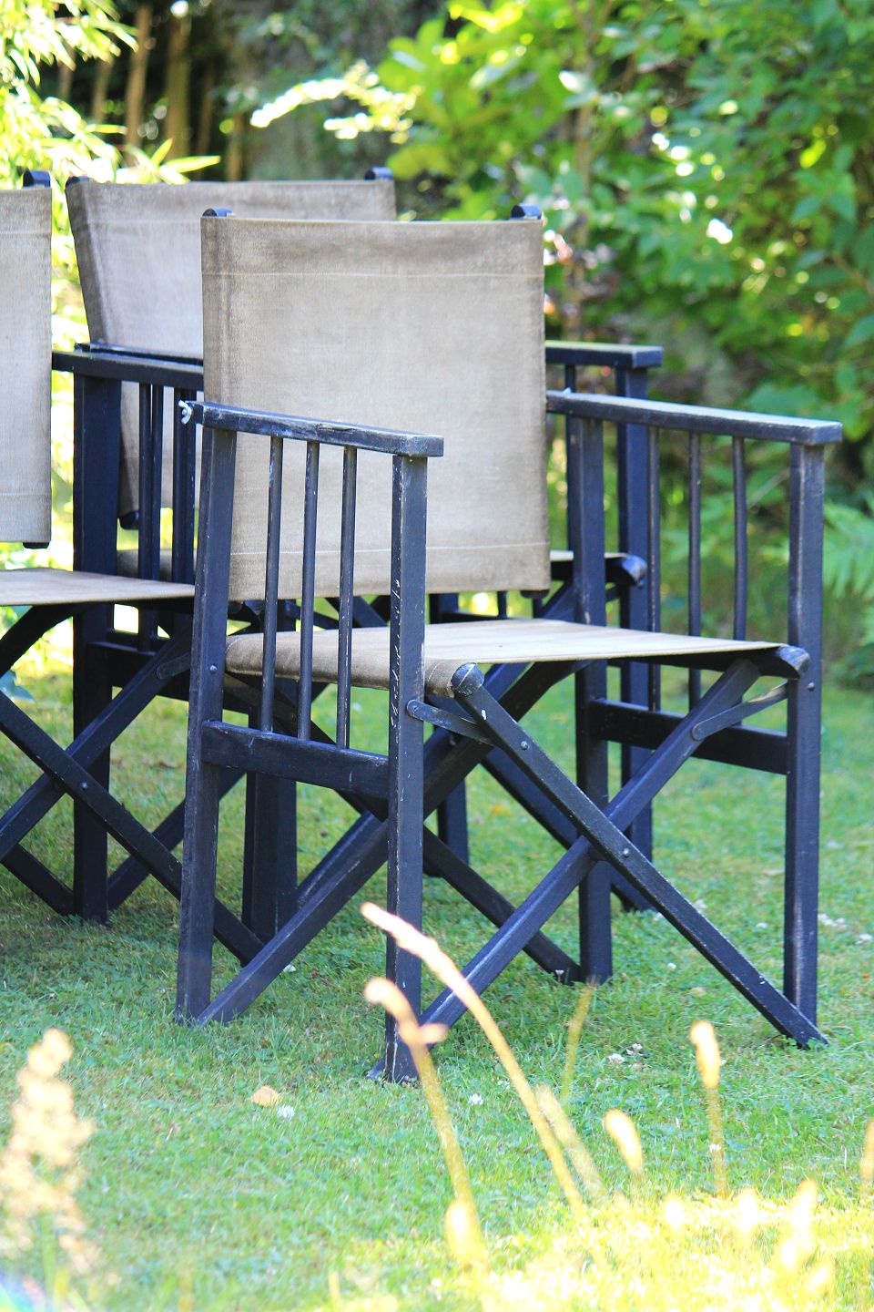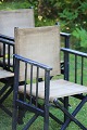 Older instructor's chair in black painted wood with strong natural-colored canvas fabric with a really nice patina...