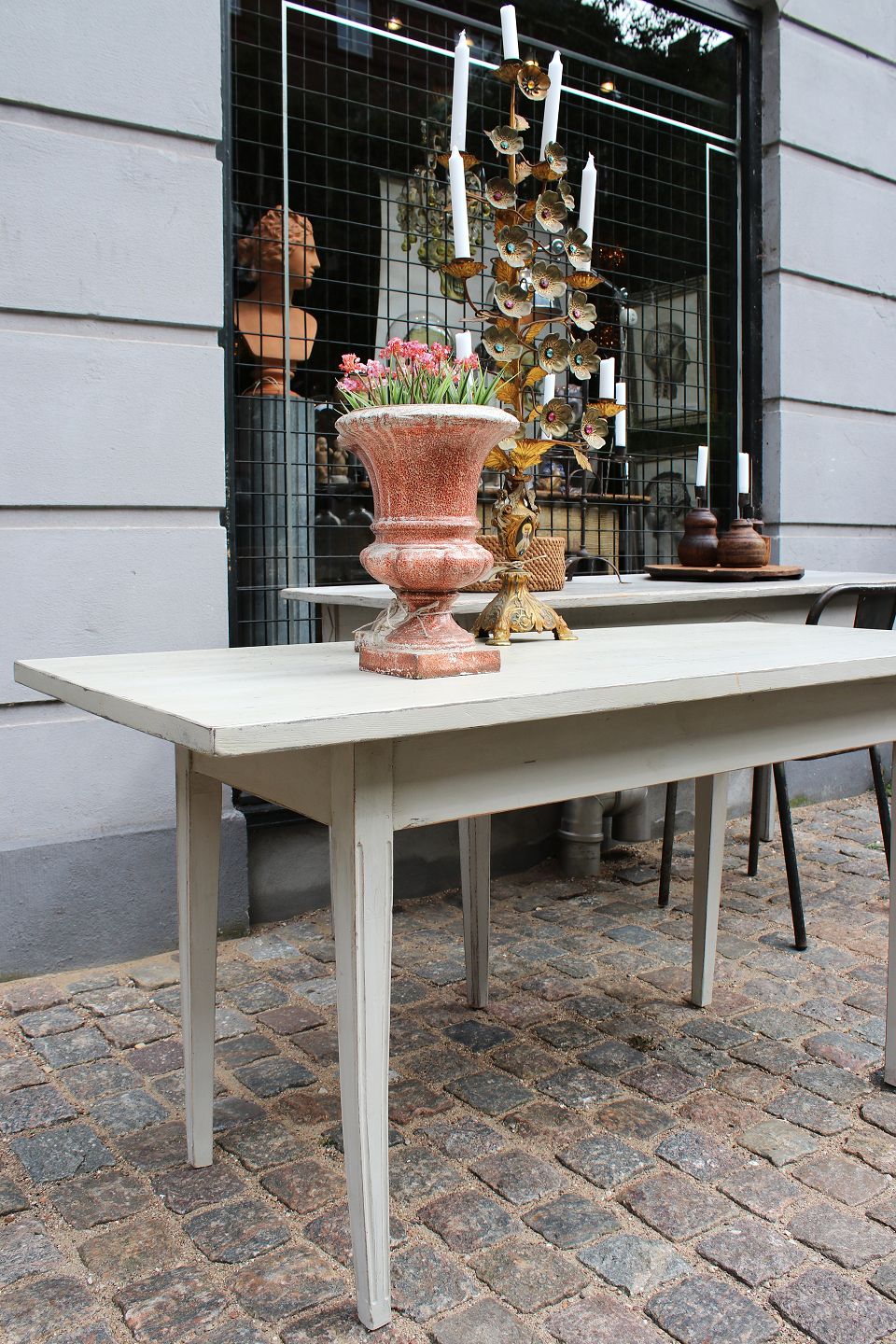 Old console / dining table in gray painted wood. H: 76cm. L: 150cm. W: 64cm.