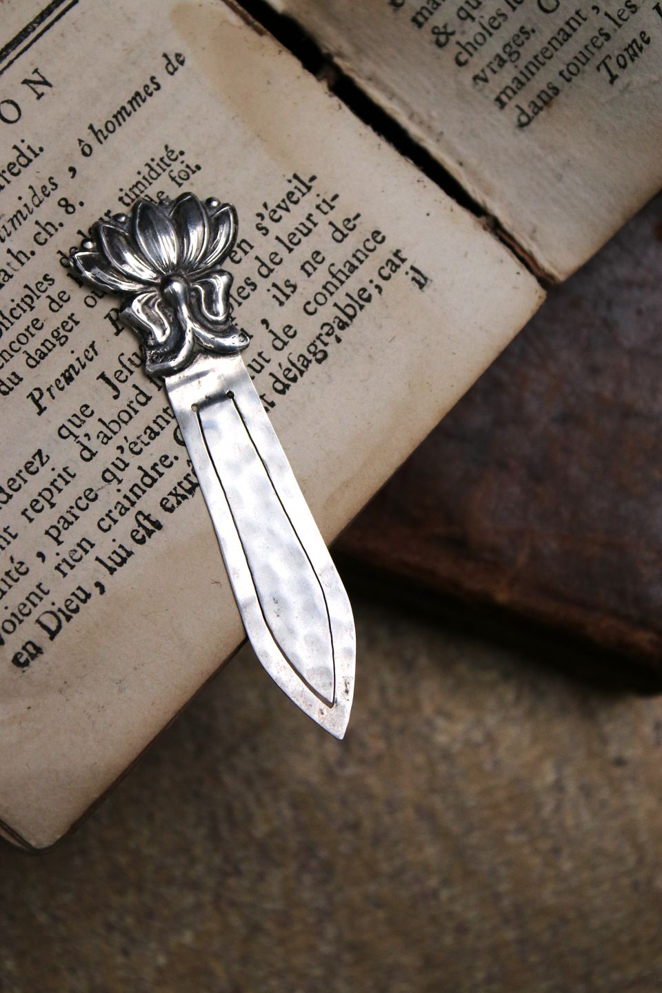 Old bookmark in silver (stamped) Length 7.2 cm. with floral motif.