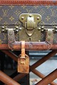 Kufferten er fastmonteret på gammelt kuffertstativ i træ.