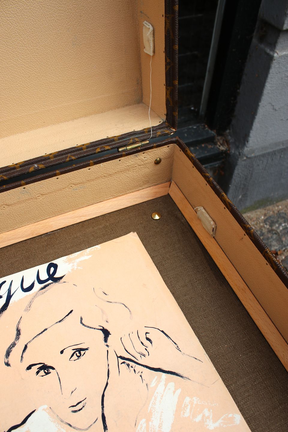 Eksklusivt sofabord / sidebord i form af original vintage LOUIS VUITTON Monogram LV rejse kuffert , nummereret og med flotte messing beslag og en god patina. (Kufferten har nogle brugsspor)