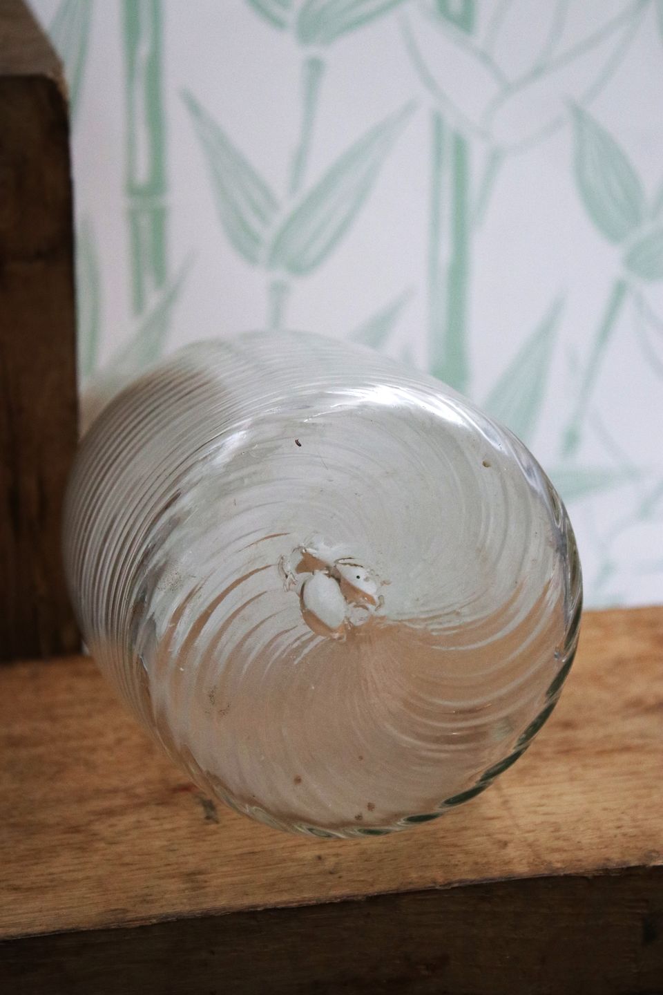 Antik , svensk karaffel i snoet mundblæst glas. H: 26cm. Dia.: 10cm. Emne nummer: Svensk snoet glas karaffel 2