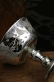 1800 tals skål på fod i fattigmandssølv / Mercury Glass med fugle og bladranke dekorationer på siden , guld belagt på indersiden og med en fin patina. H:12,5cm. Dia.:13,5cm.