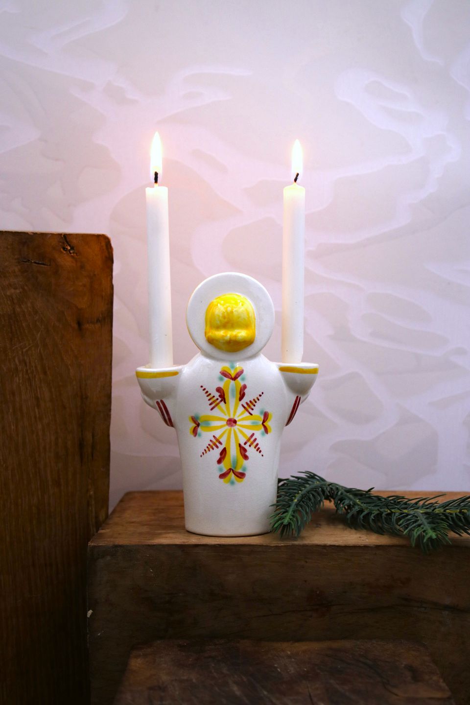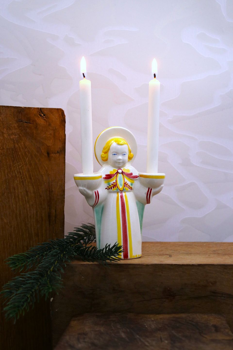 Aluminia fajance jule engel der bære 2 små stearinlys.
