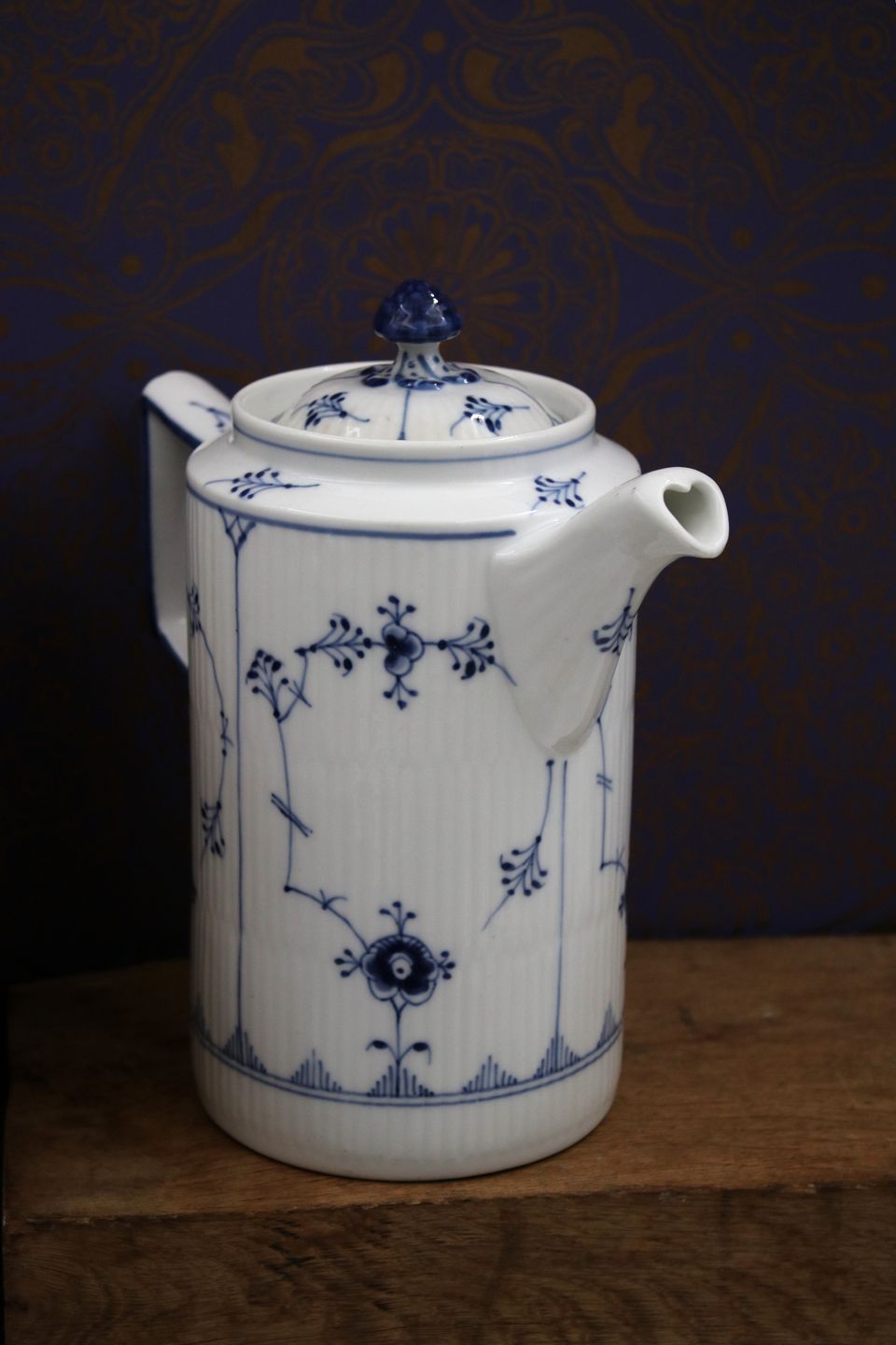 Antique Blue Fluted Plain rare coffee pot from Royal Copenhagen. Decoration number: 1/372. 1.sort. from 1898-1923.