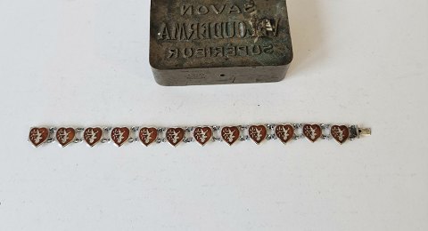 Hjerte armbånd i sølv og rød emalje