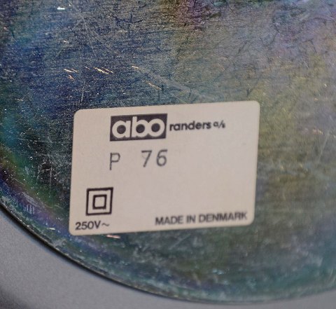 Bordlampe P 76 fra Abo, Randers. Lampen har en hvid glasskærm og hvidlakeret fod. Lampen er i meget pæn stand. H: 38 cm. Ø: 30 cm.