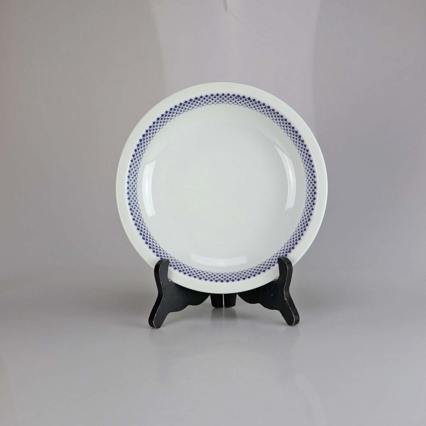 Glat hvidt porcelæn med mørkeblå rombe dekoration