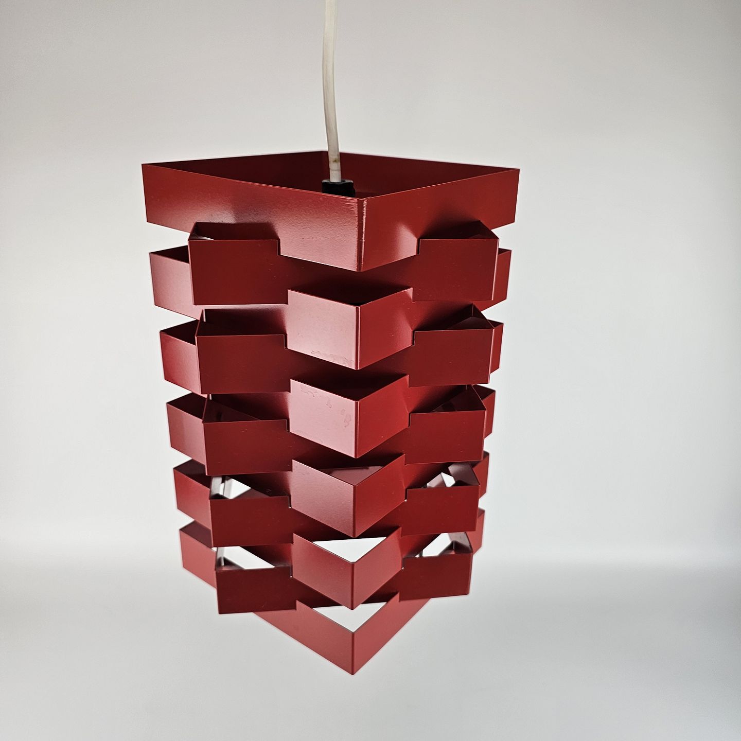 Otte-kantet loftlampe i rødlakeret metal. Produceret fra 1960 til 1969