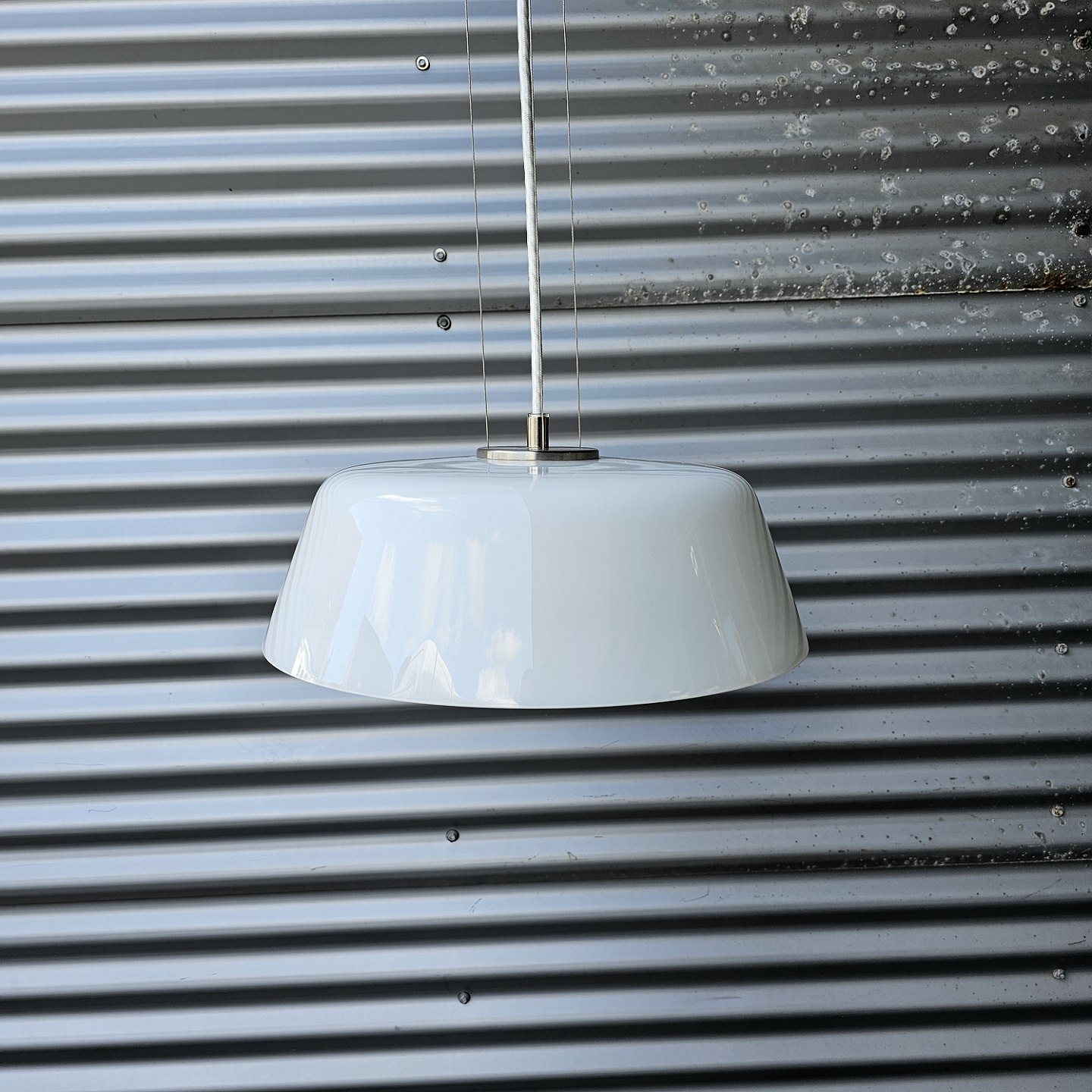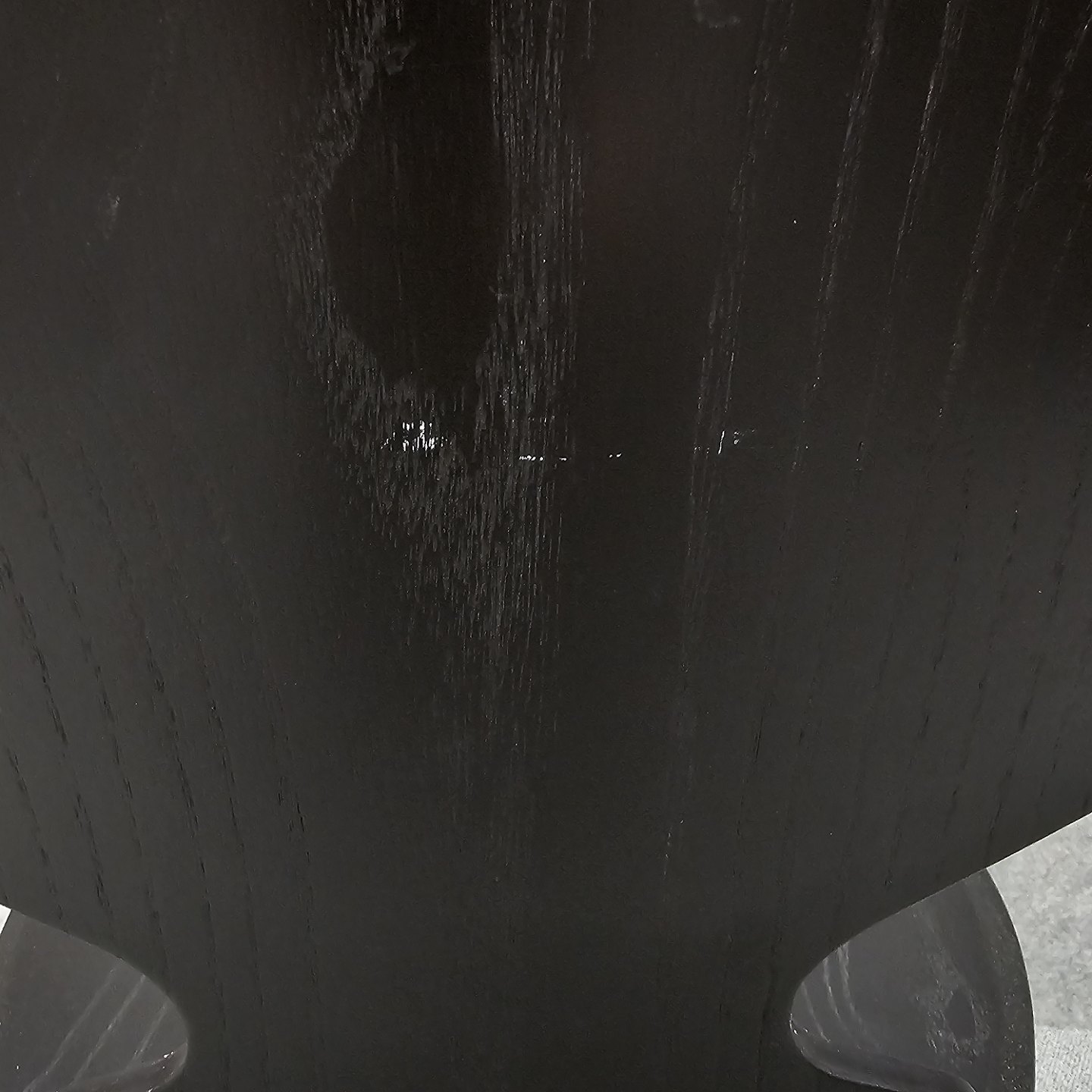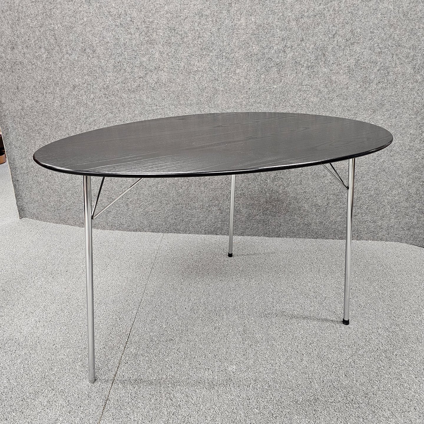 Æggeformet bord, model 3603 med bordplade af sortlakeret eg og ben af forkromet stål