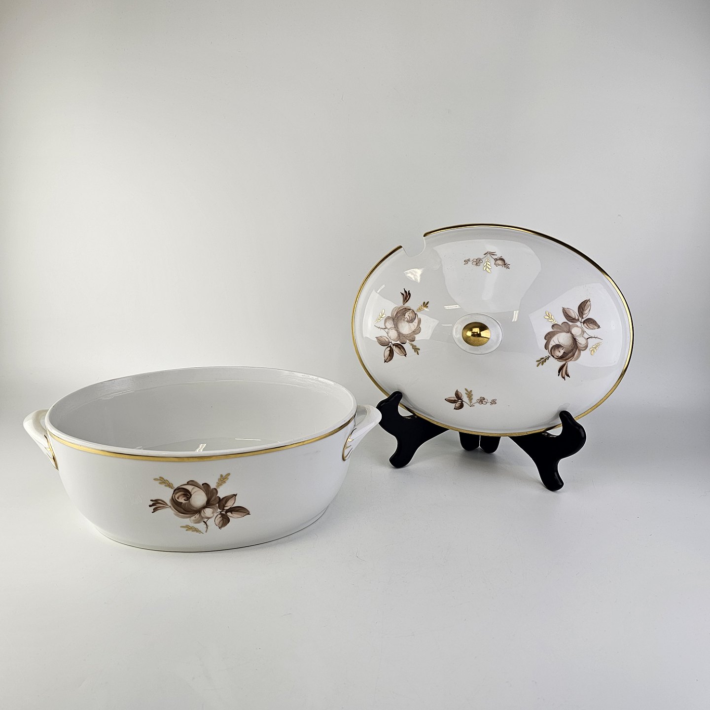 Terrin med låg i porcelæn fra stellet Brun Rose