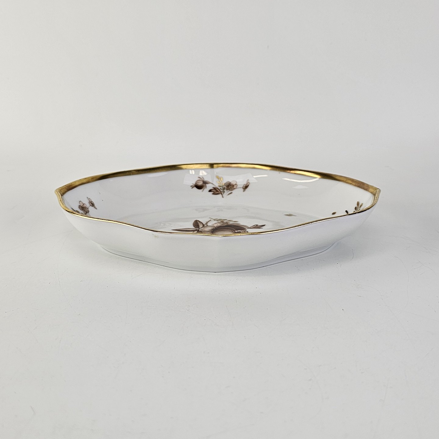 Ovalt kantet fad i porcelæn fra stellet Brun Rose