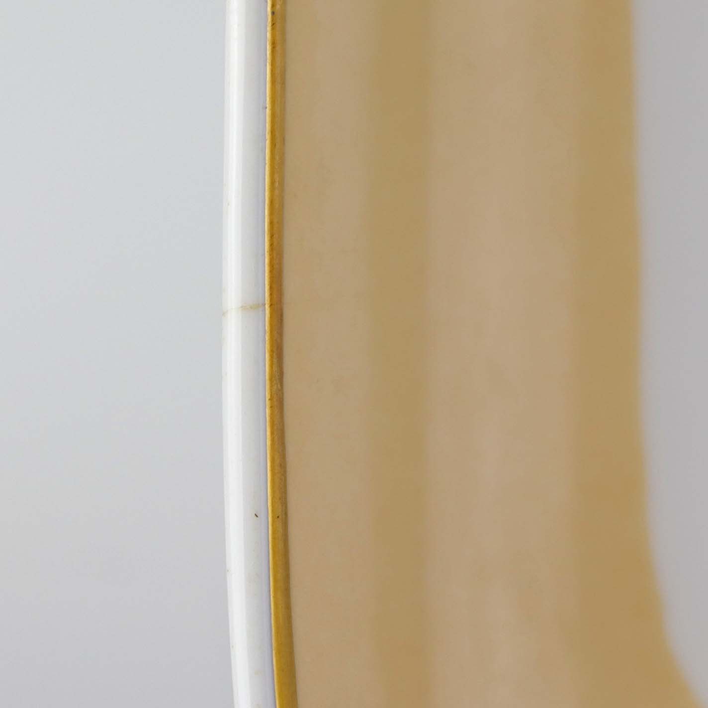Fremstår med mindre brugsspor et enkelt sted på dekorationen samt en minimal brunt område på fadets kant.
