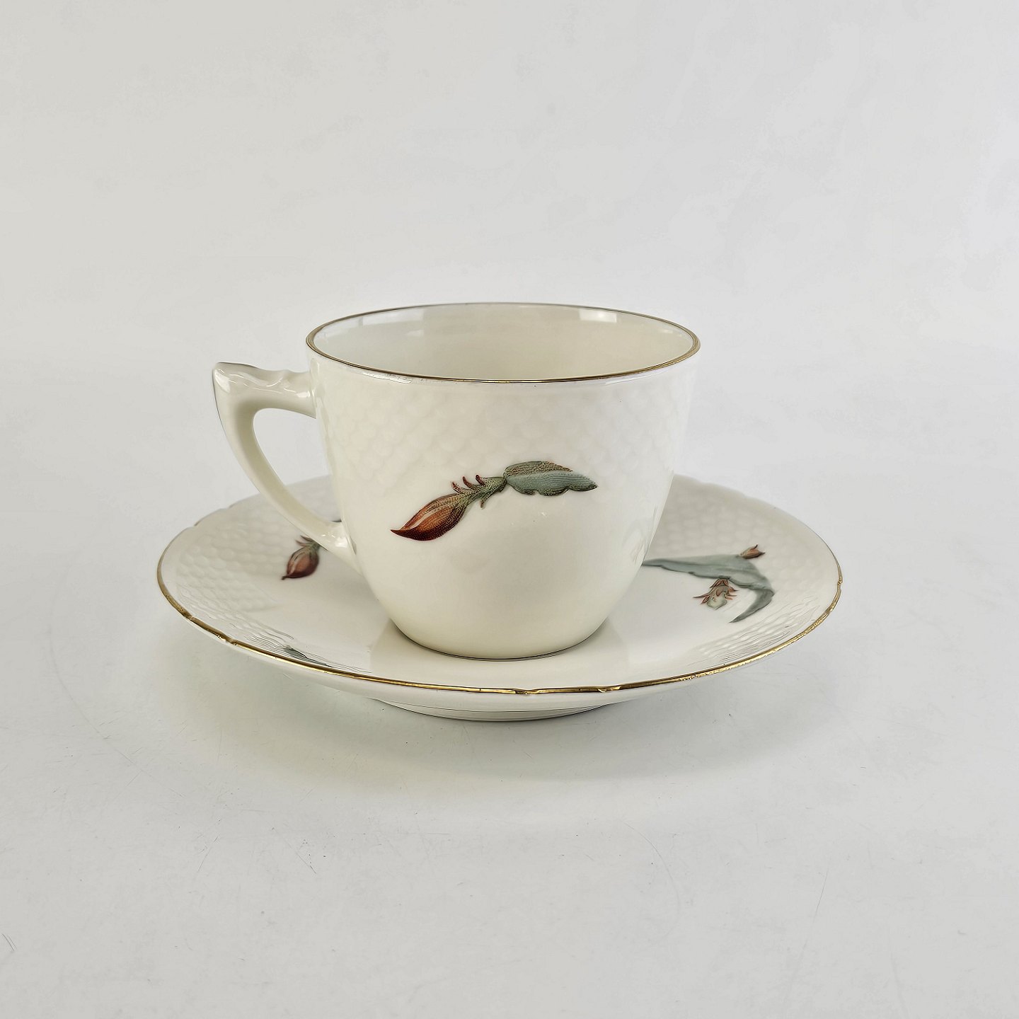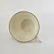 Kaktus er cremefarvet porcelæn i skælform, dekoreret med kaktusblomster og guldkant