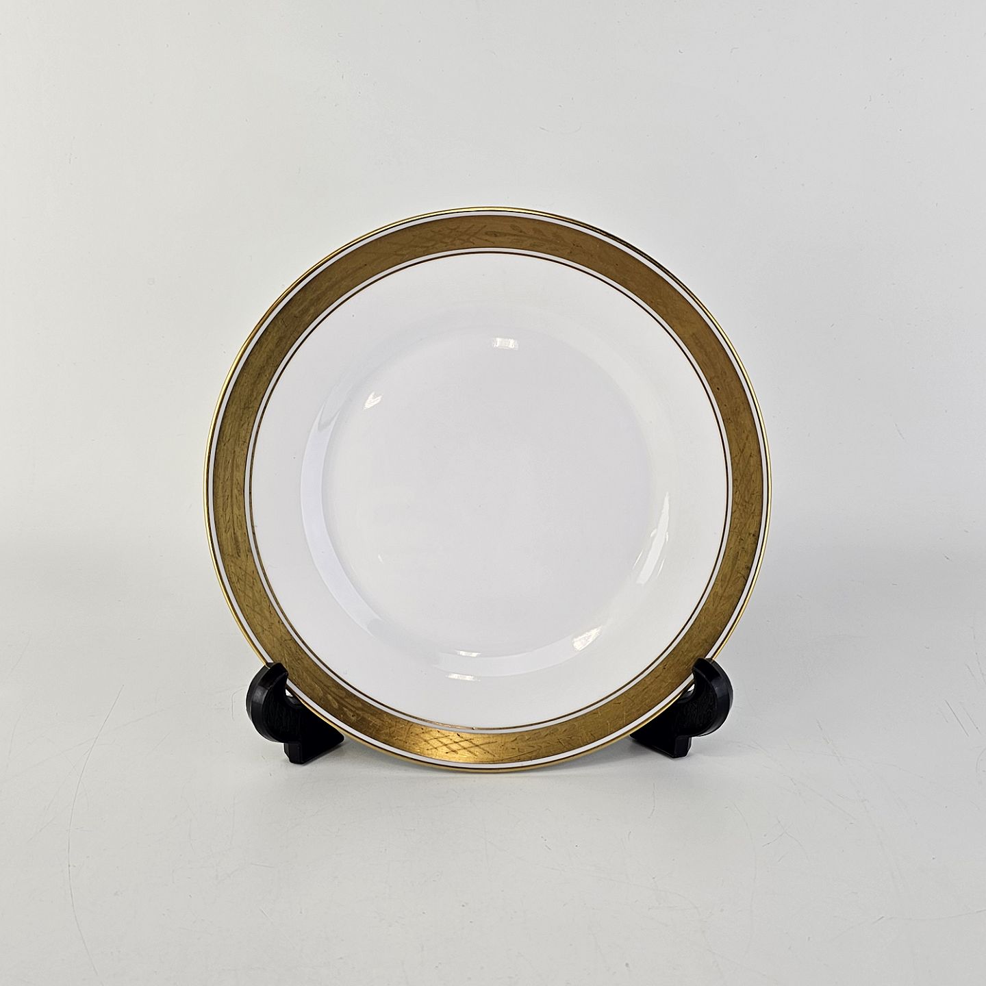 Stel nr. 607 er i hvidt porcelæn og har en guldkant med bladværk