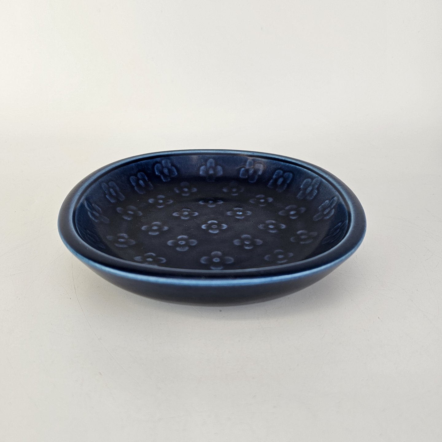 Firkantet Marselis skål i mørkeblå fajance med blomster mønster