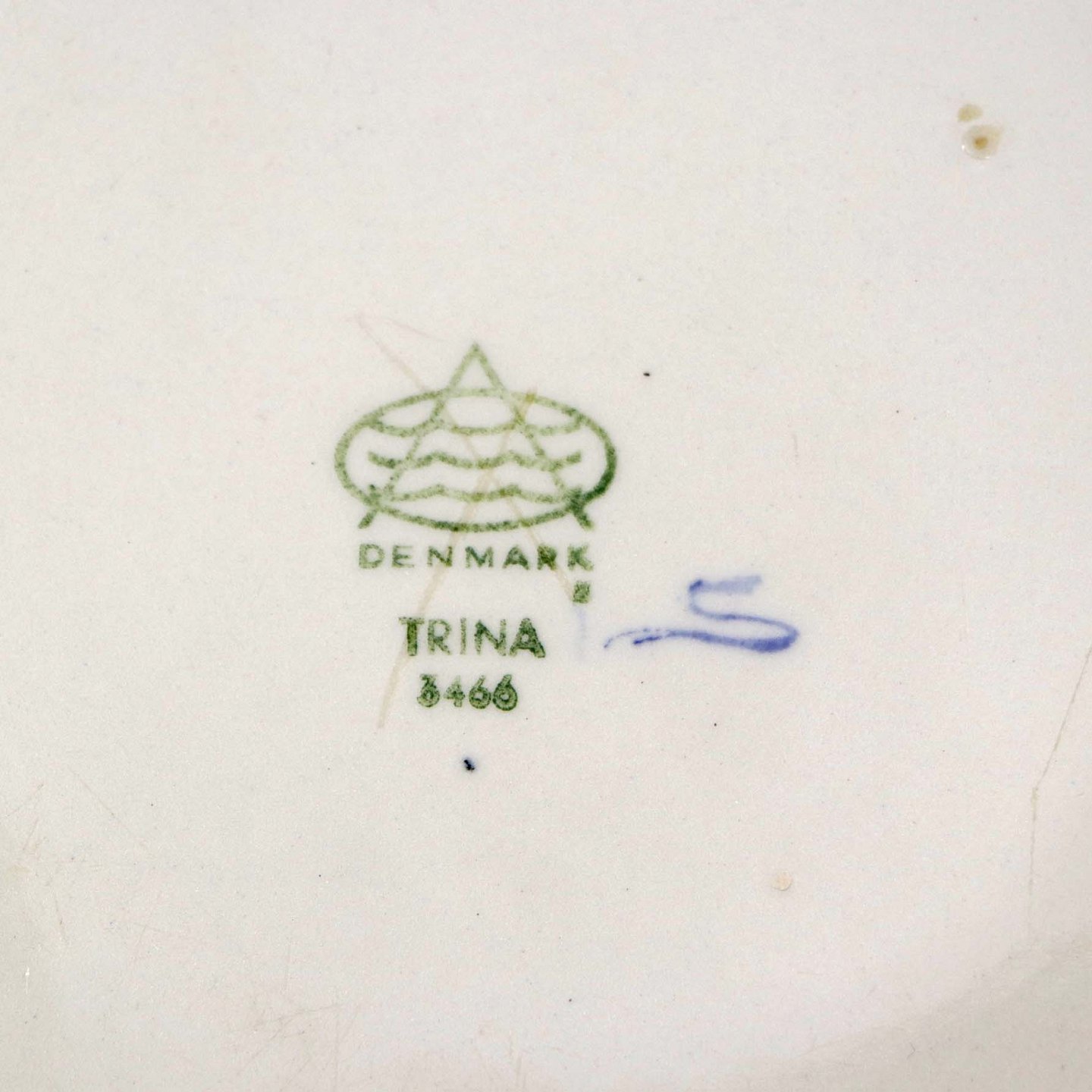 Kartoffelskål i kongelig fajance fra stellet Grøn Trina. Nr. 3466