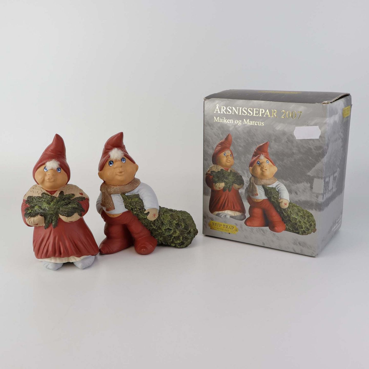Figursæt med motiv Maiken og Marcus, som er årets nissepar fra 2007 fra serien Klarborg jul. Figurene kommer med original boks.