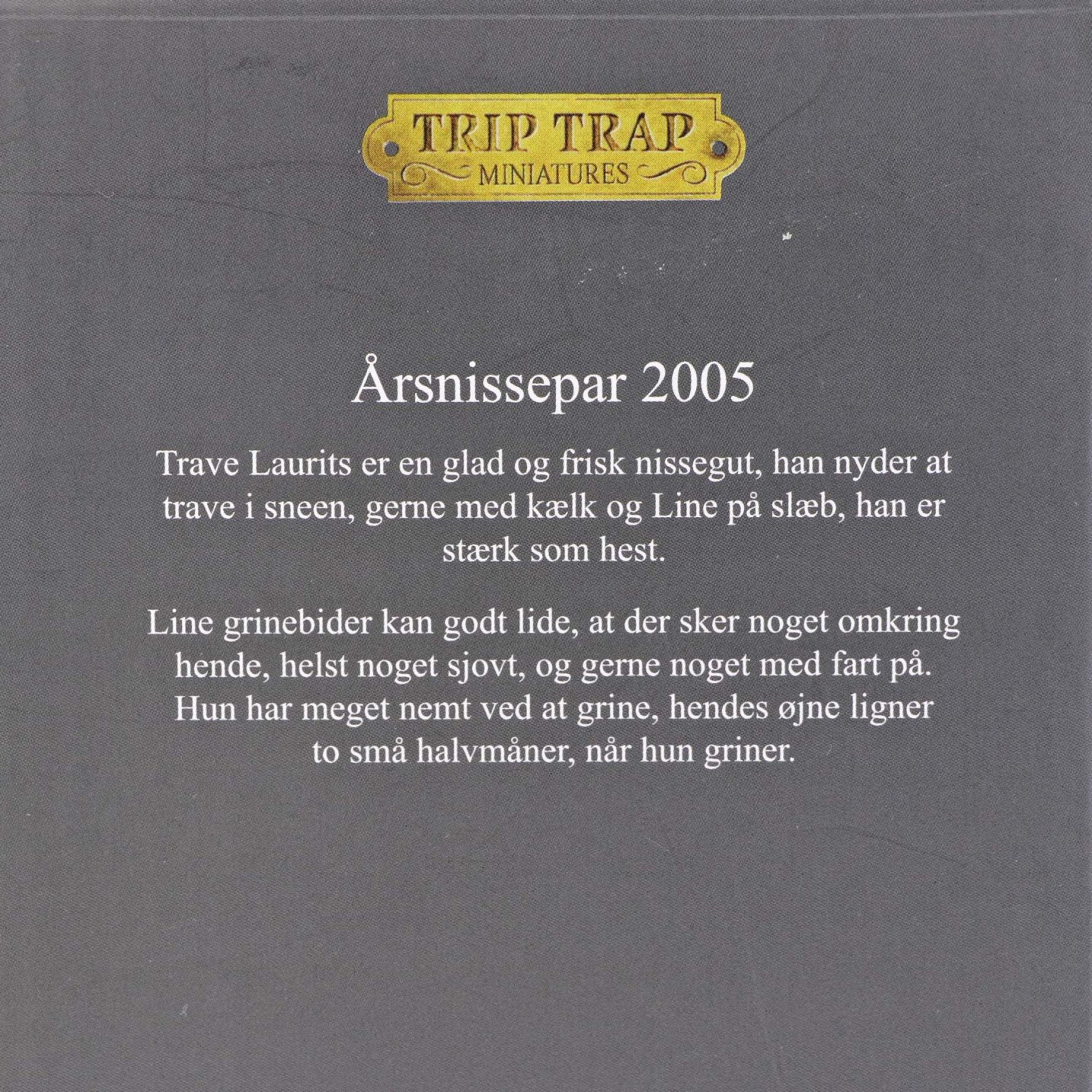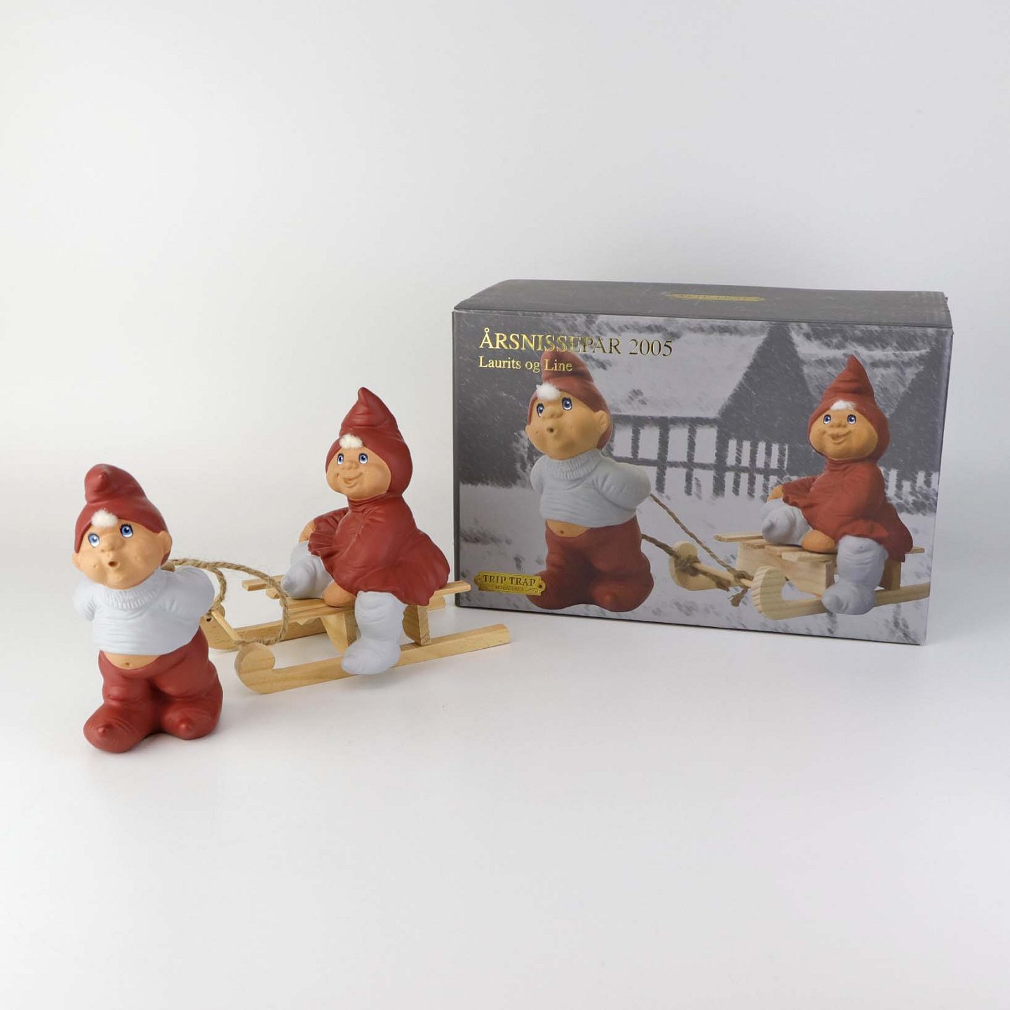 Figursæt med motiv Laurits og Line, som er årsnissepar fra år 2005 fra serien Klarborg jul. Figurene kommer med original boks.
