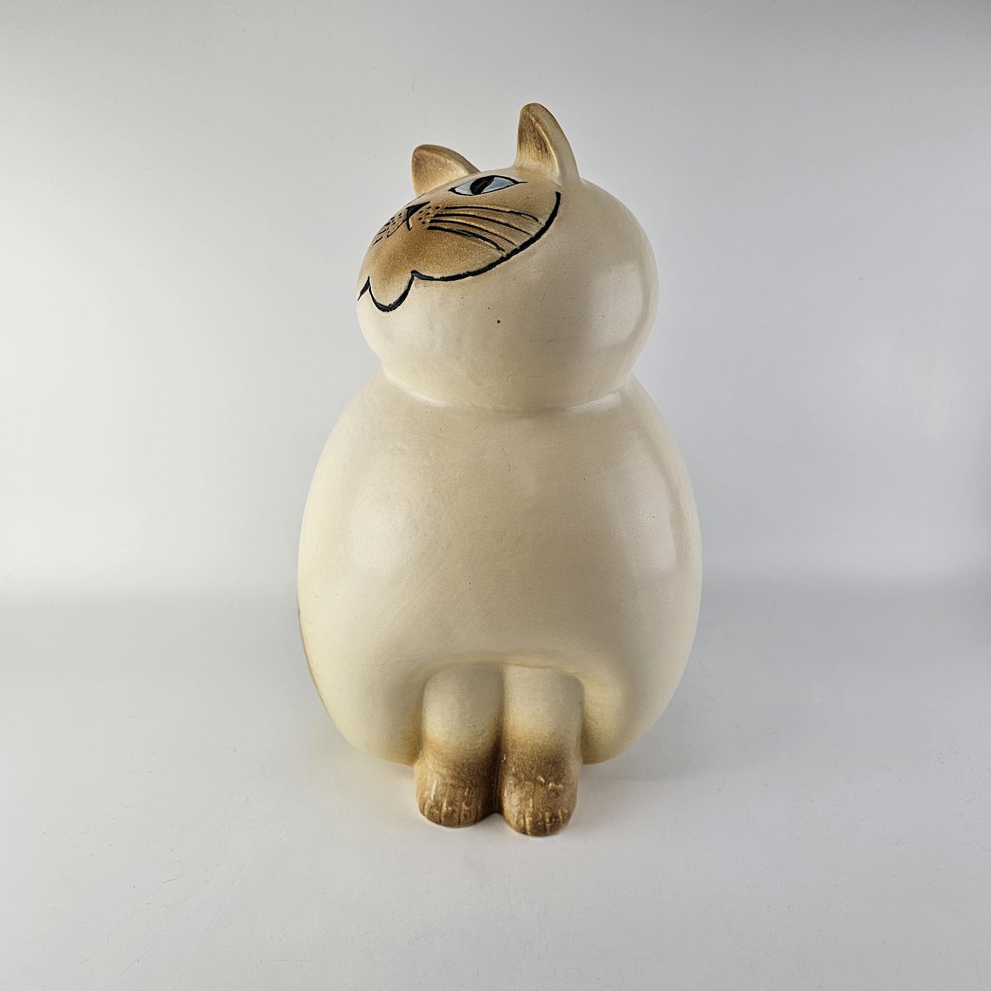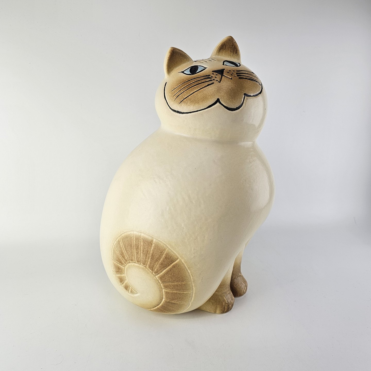 Figur i stentøj med motiv af en lys kat af modellen Mia fra år 2010