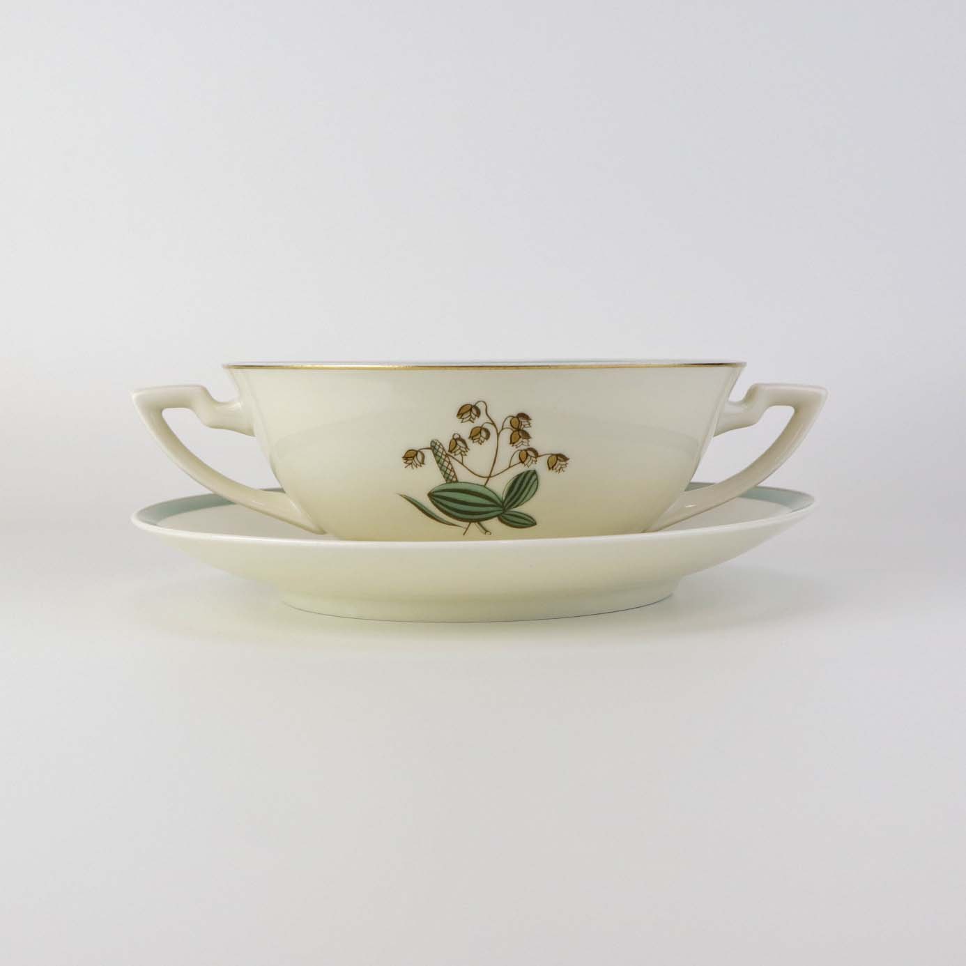Suppekop med underkop i kongelig porcelæn fra stellet Hjertegræs. Nr. 884/9571