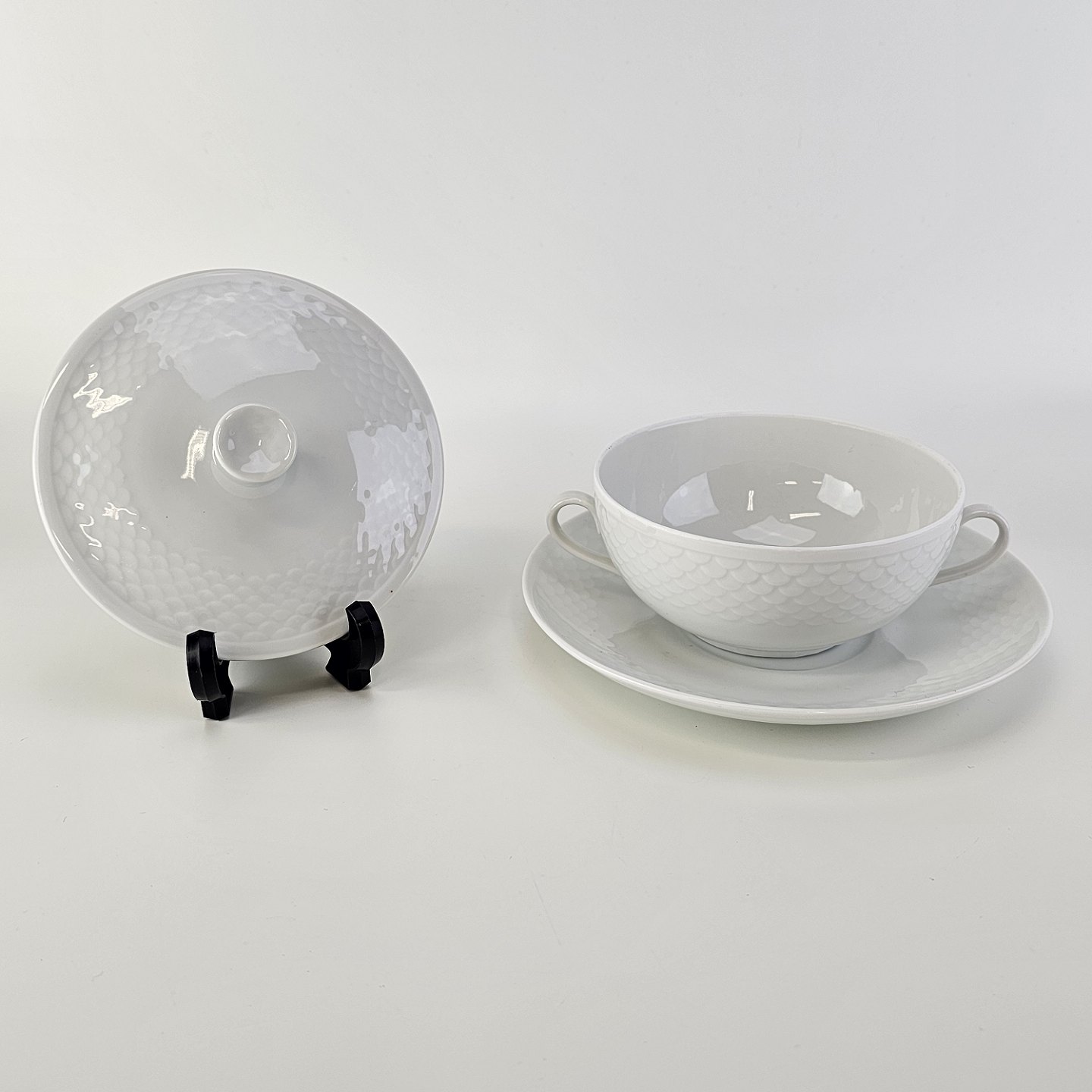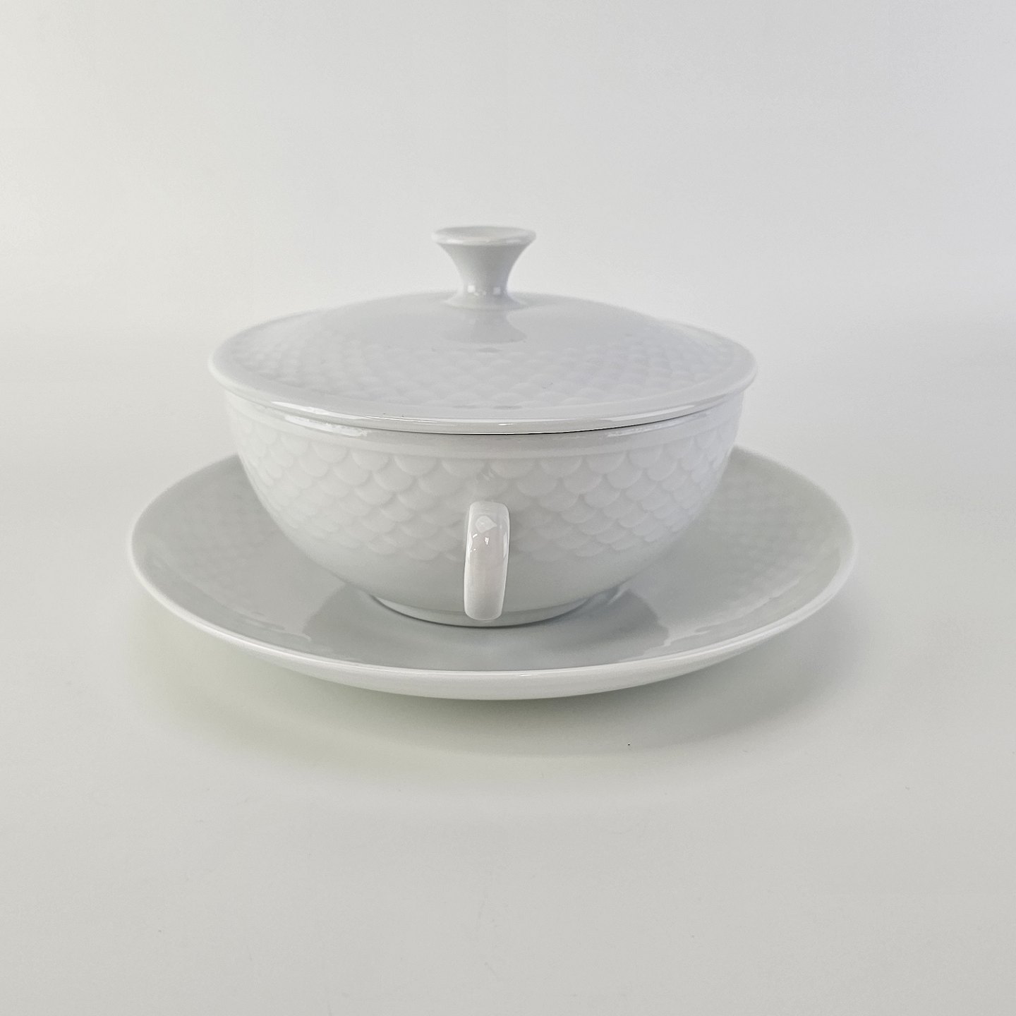 Elegance er hvidt glaseret porcelæn med skæl mønster