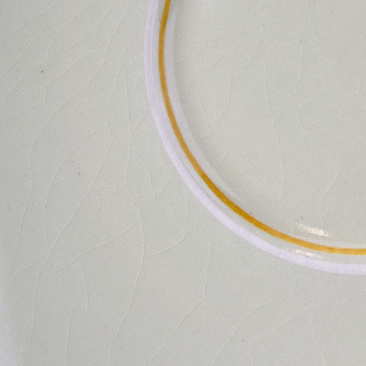 Fremstår med krakkeleringer og mindre ujævnhed i glasuren på bagsiden.