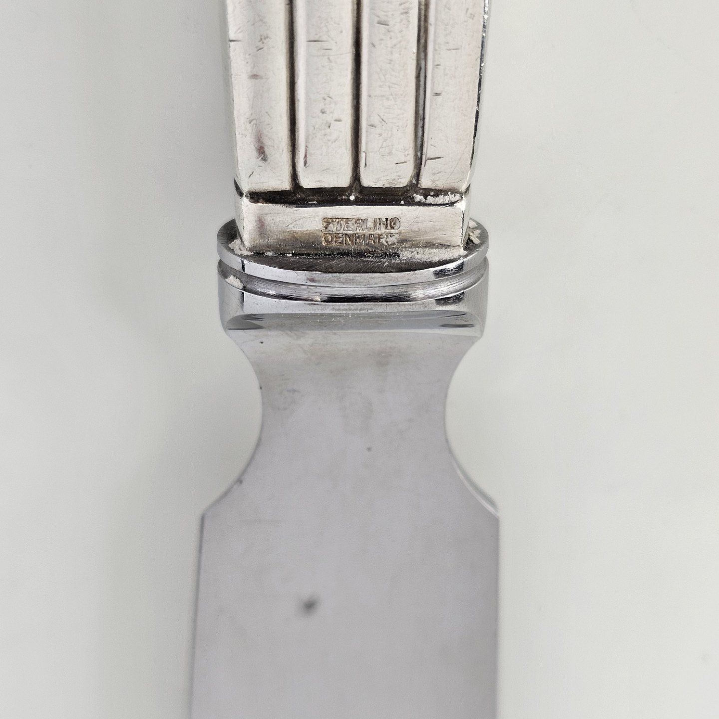 Bernadotte lagkagekniv i sterling sølv, med rustfrit stål skaft dekoreret med striber