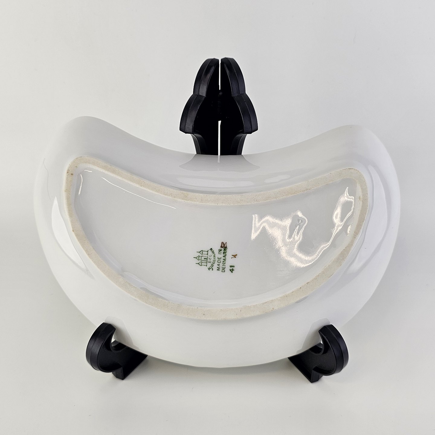Halvmåneformet fad i porcelæn fra stellet Eremitage