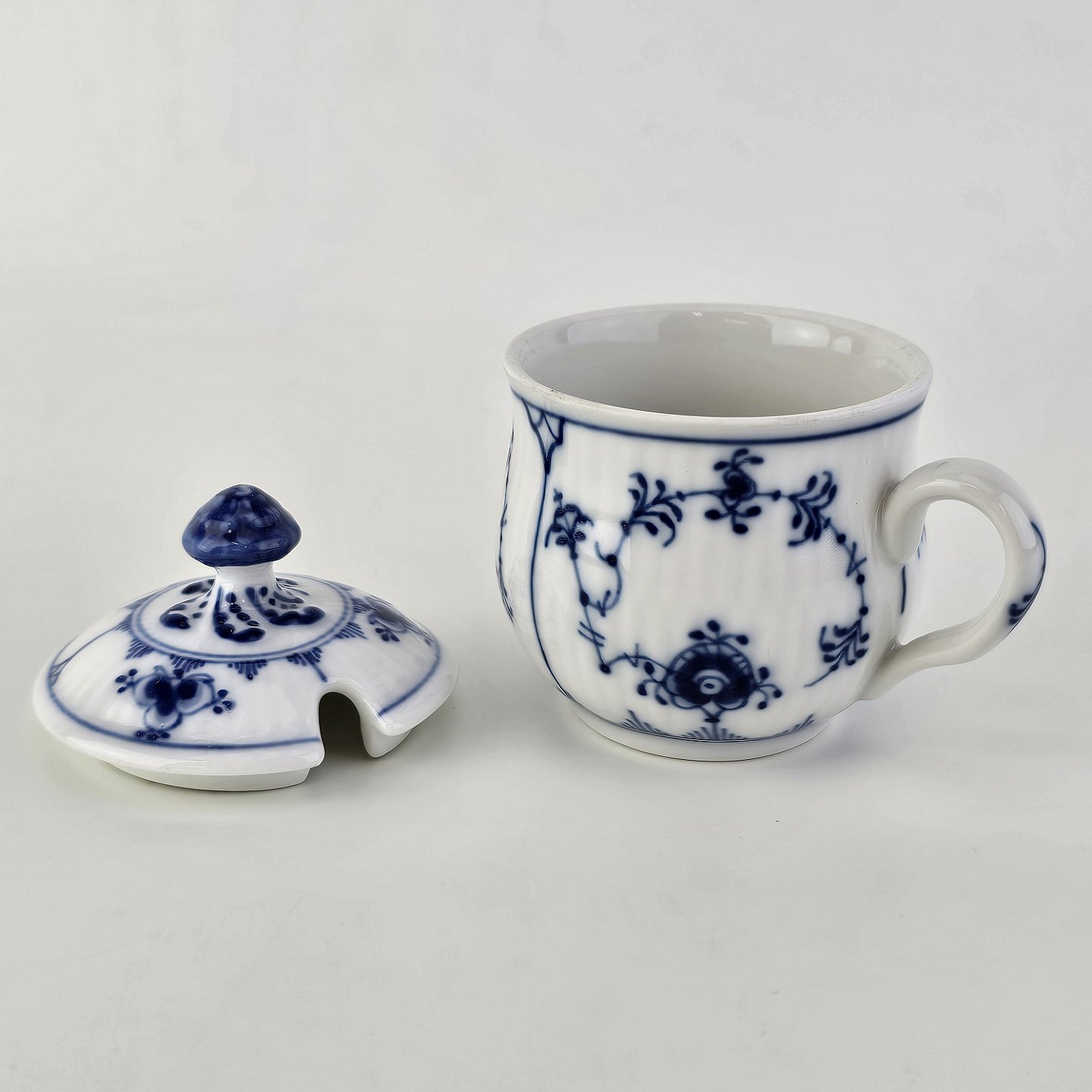 Sennepskop i kongeligt porcelæn fra stellet Musselmalet Glat