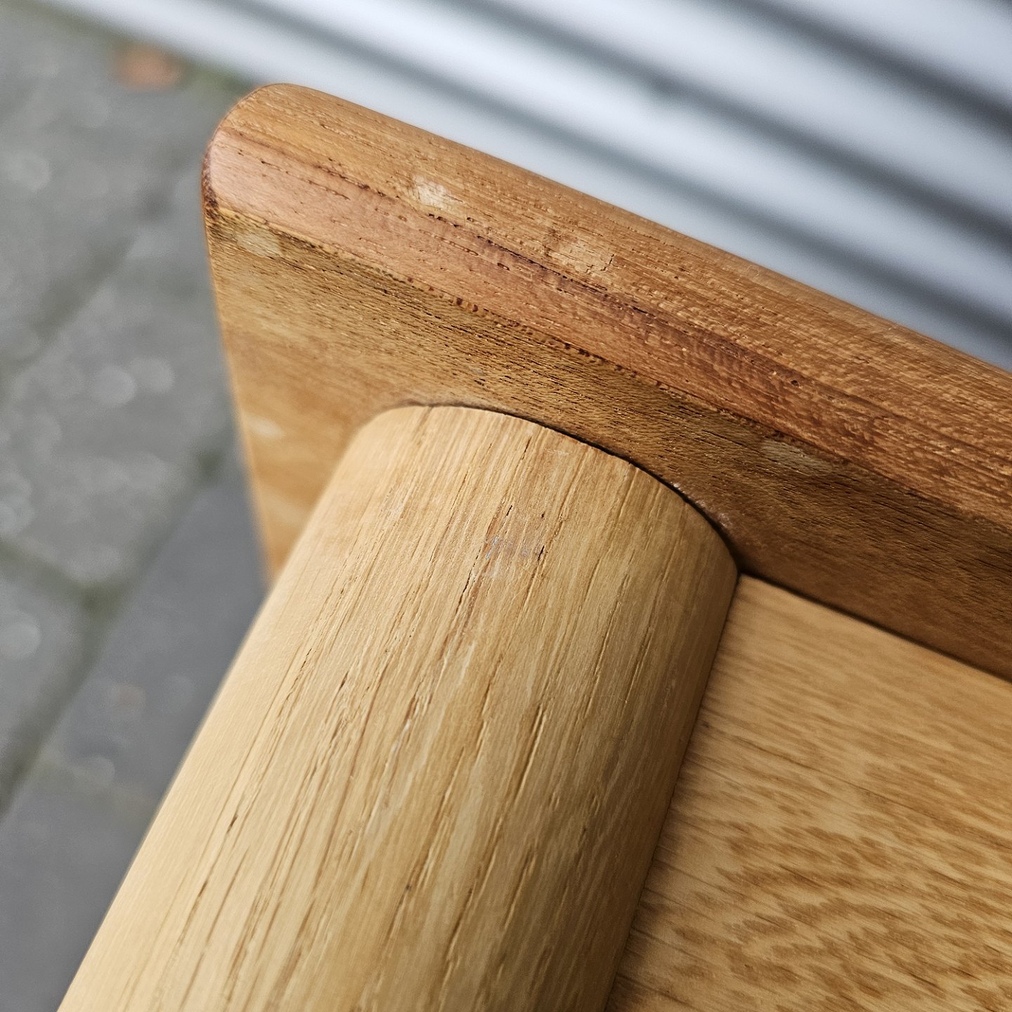 Skrivebord i teaktræ med stor skuffe og lås, også kaldet dameskrivebord