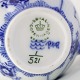 Musselmalet halvblonde er riflet hvidt porcelæn med dekoration af blå ranker og en kant med blonder.