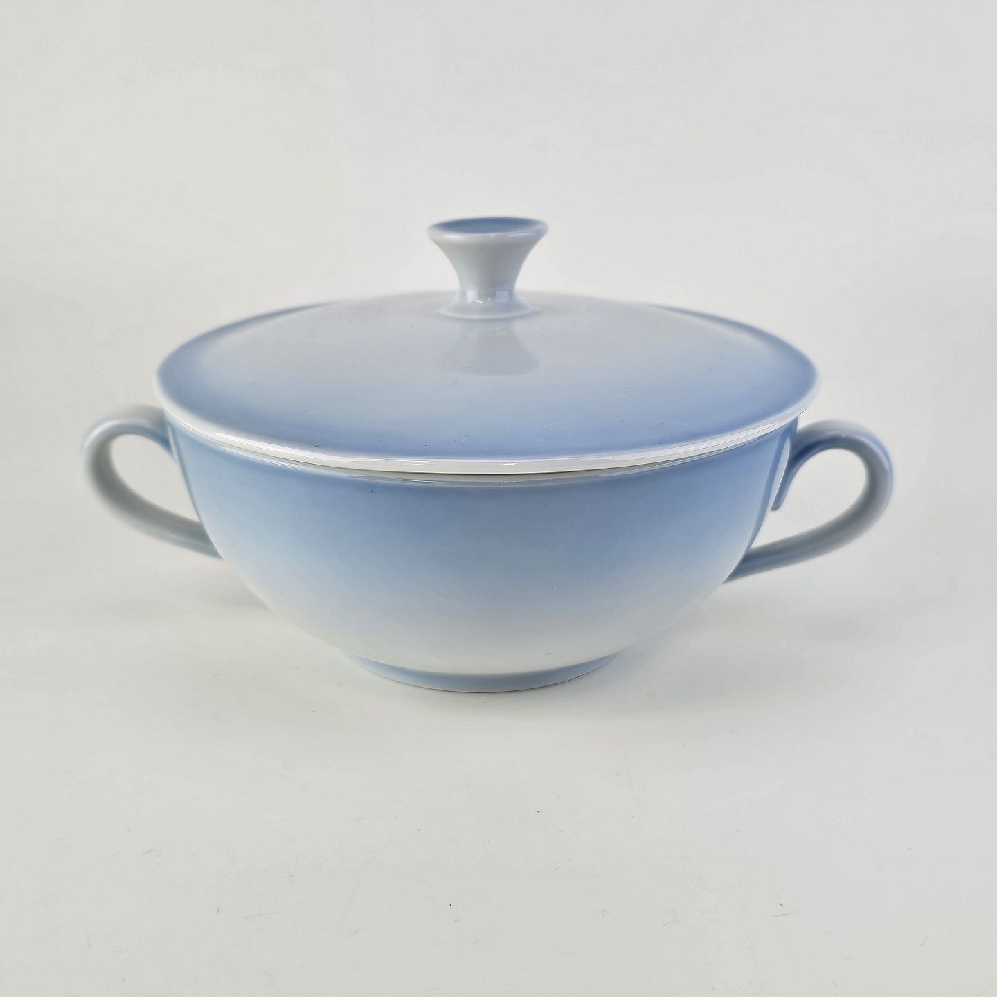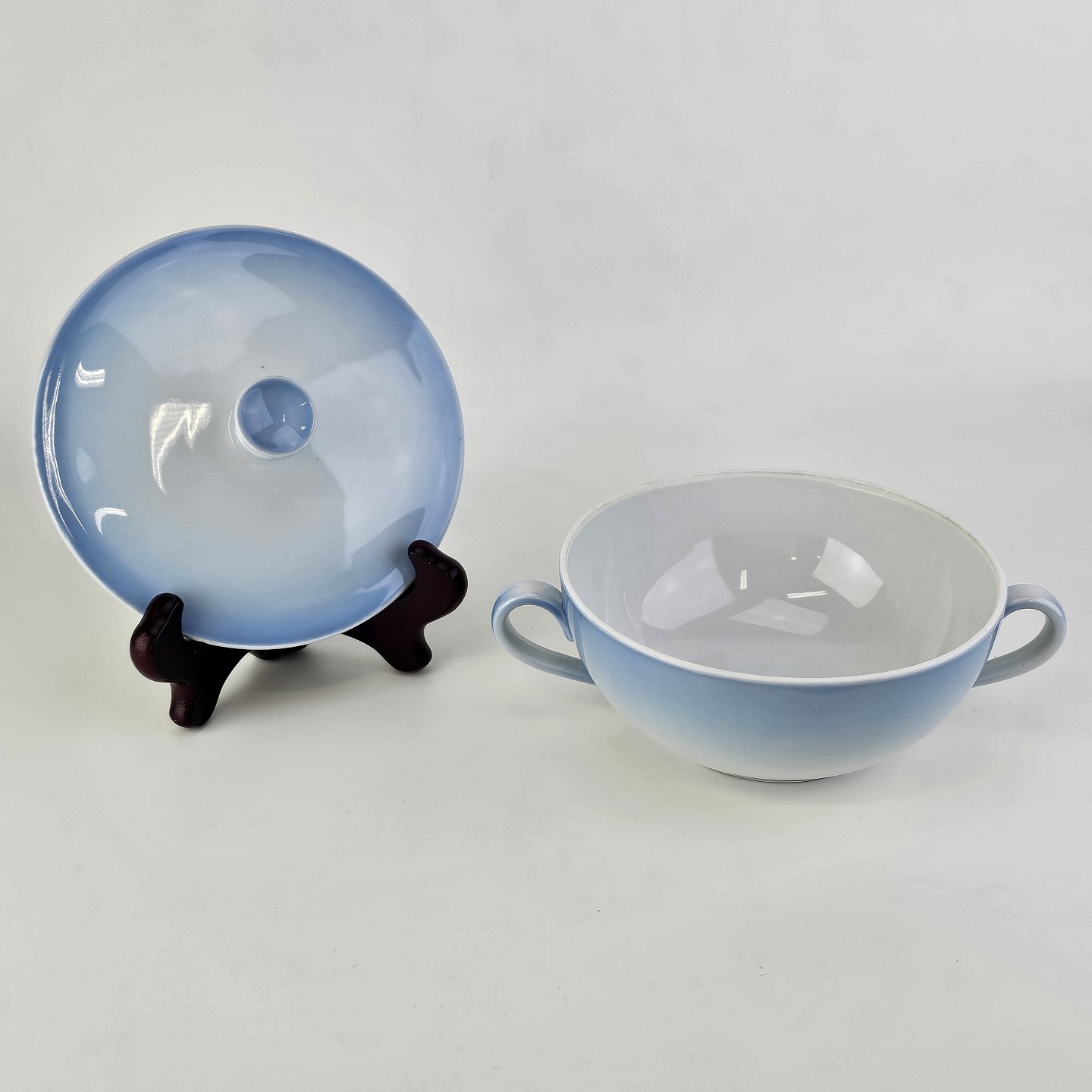 Blå tone er fremstillet af hotelporcelæn, glaseret hvidt med blå nuancer og dekoreret med skel lignende mønster.