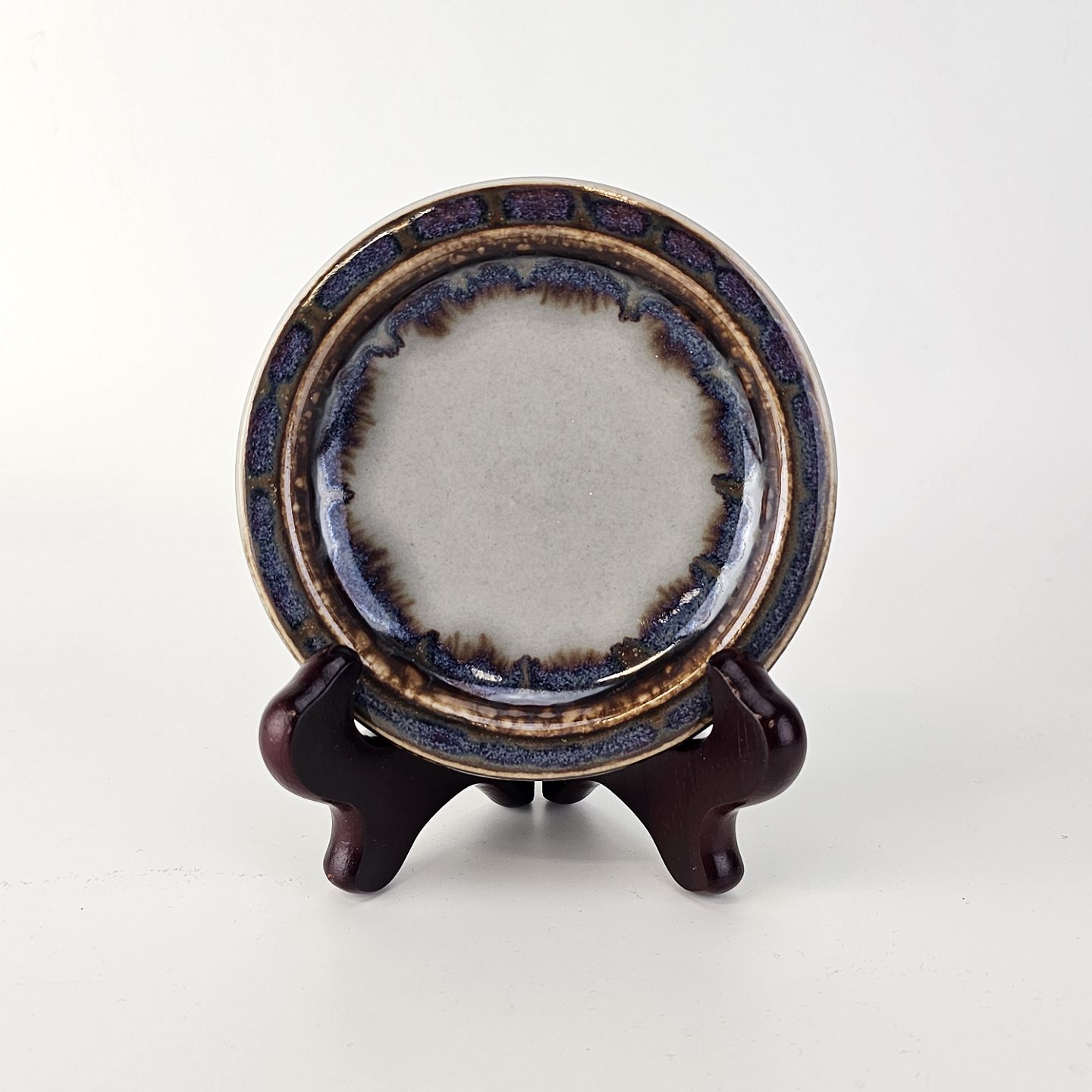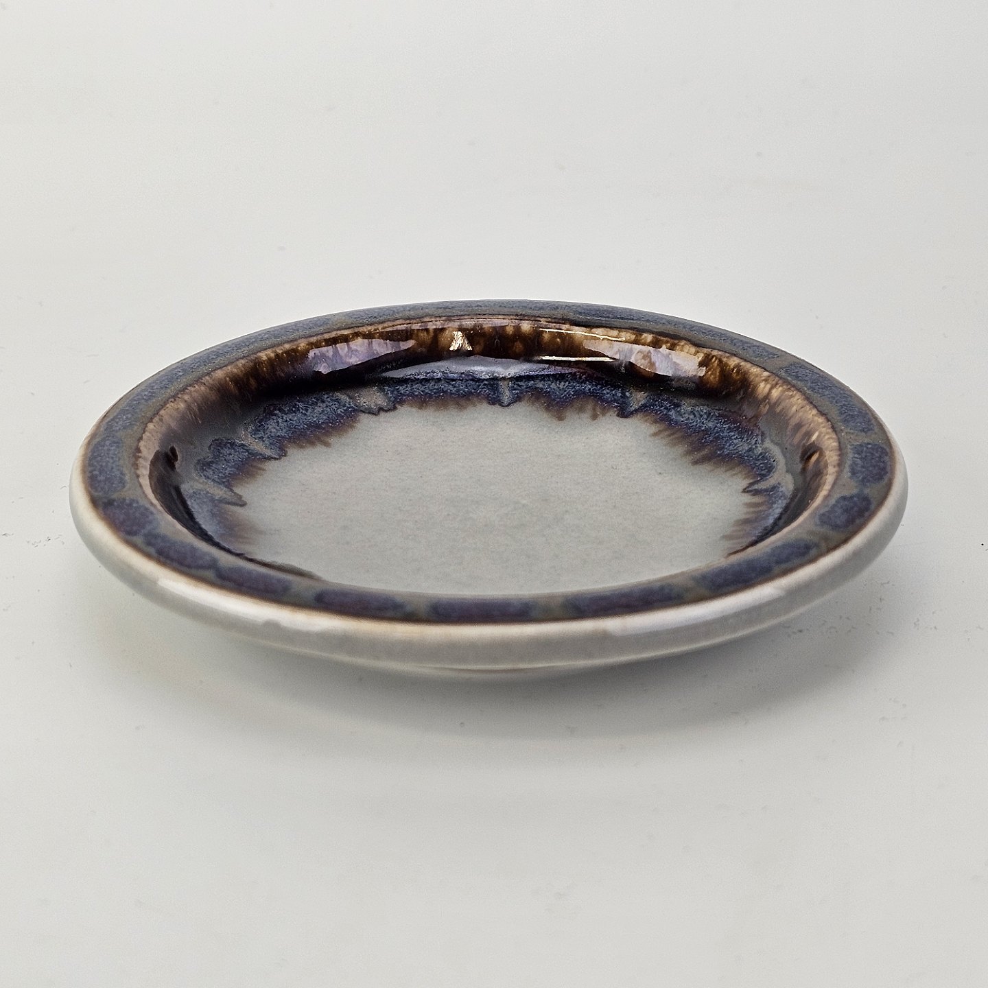 Stellet Mexico er et ovnfast stel dekoreret med marmoreret glasur, i brune og blå farver, så det ser ud til kanten er brændt.