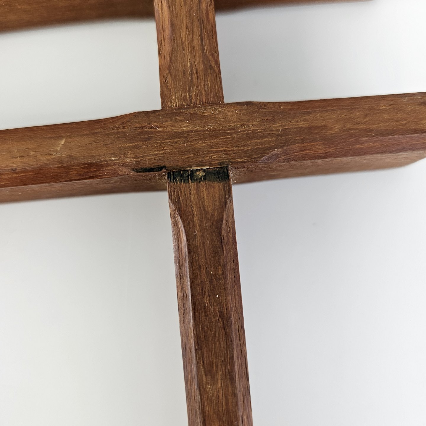Fremstår med diverse små mærker og skrammer på træets overflade