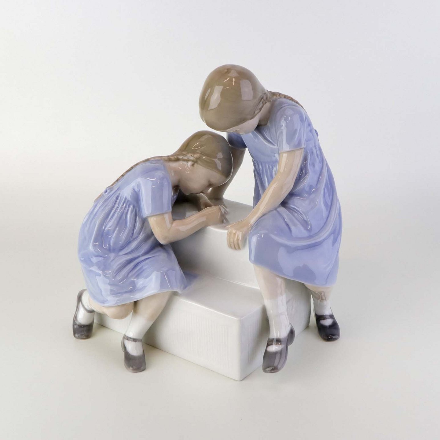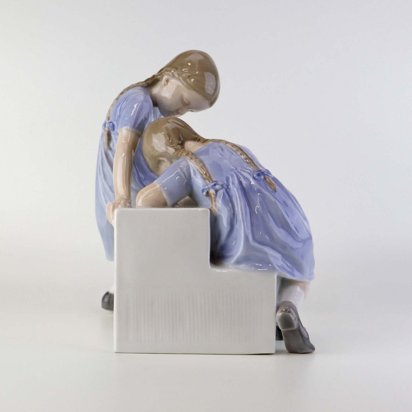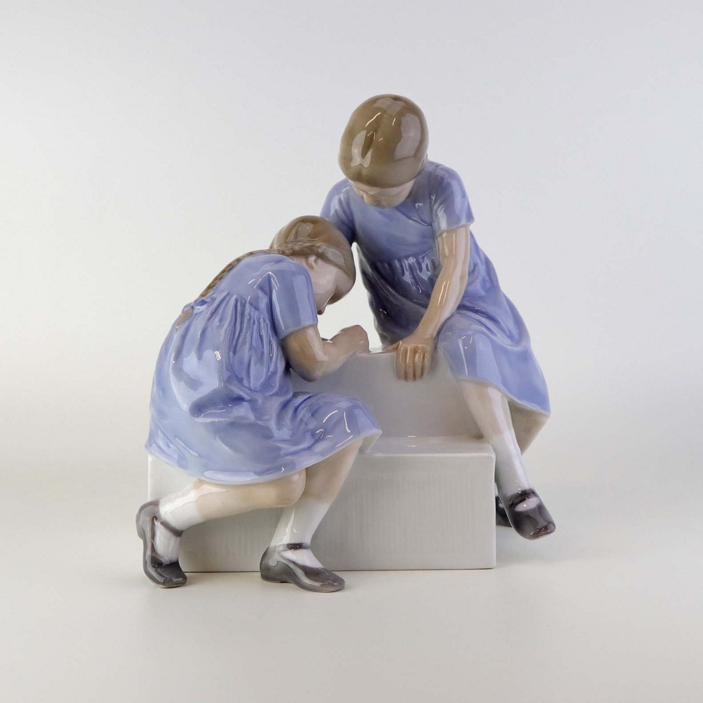 Figur i porcelæn med motiv af to piger på en tappesten. Nr. 1871