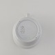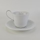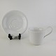 Kop med høj hank og underkop i glat hvidt porcelæn