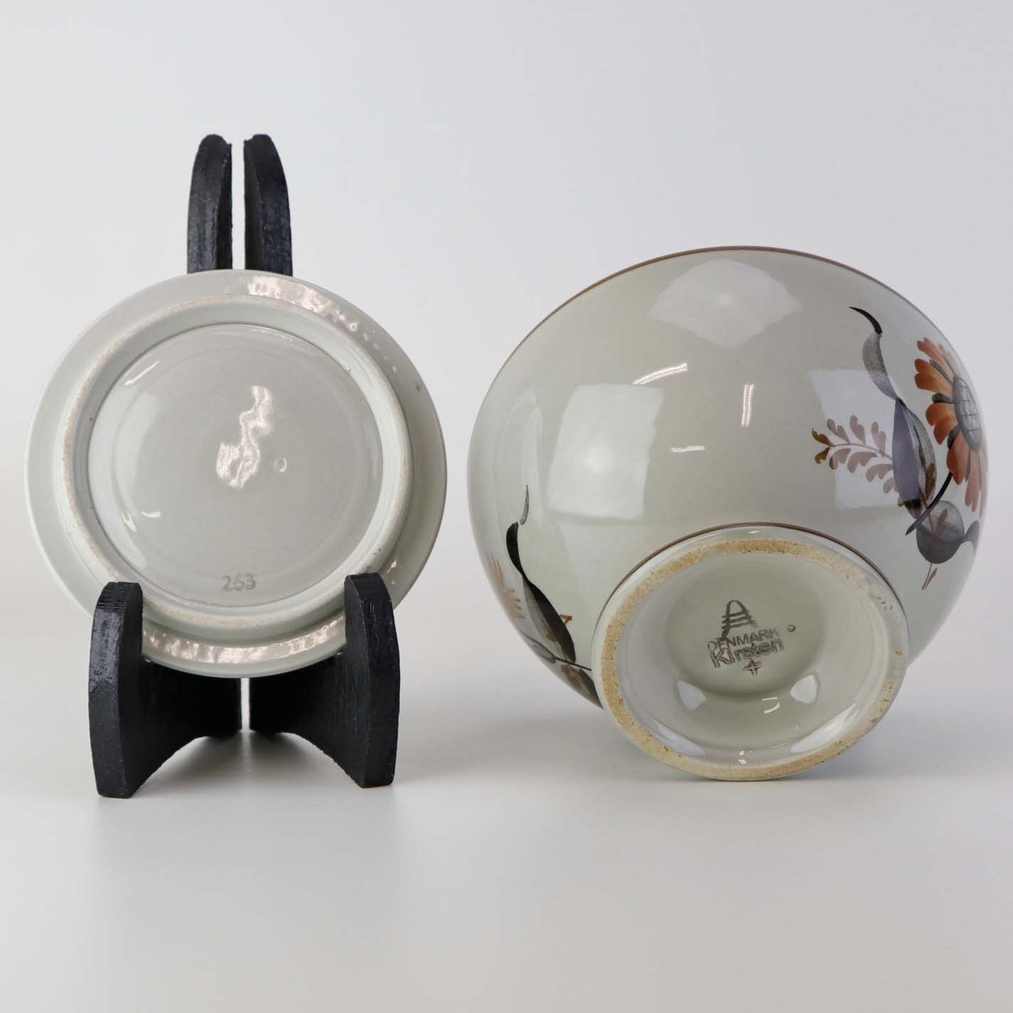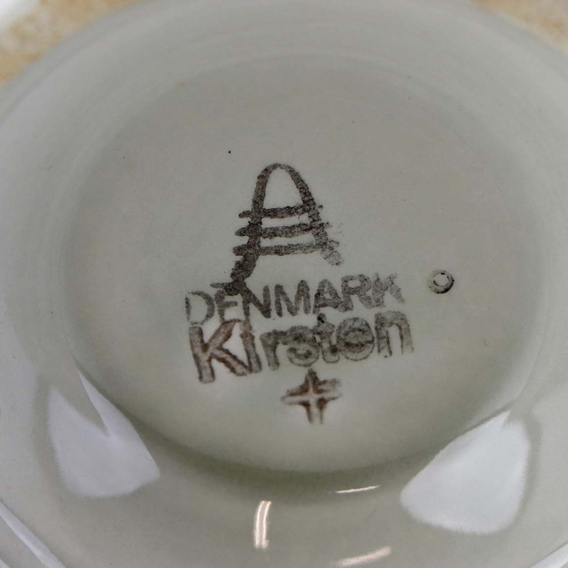 Lågskål til sukker i fajance fra stellet Kirsten, som blev fremstillet i perioden 1934-1957. Nr. 263
