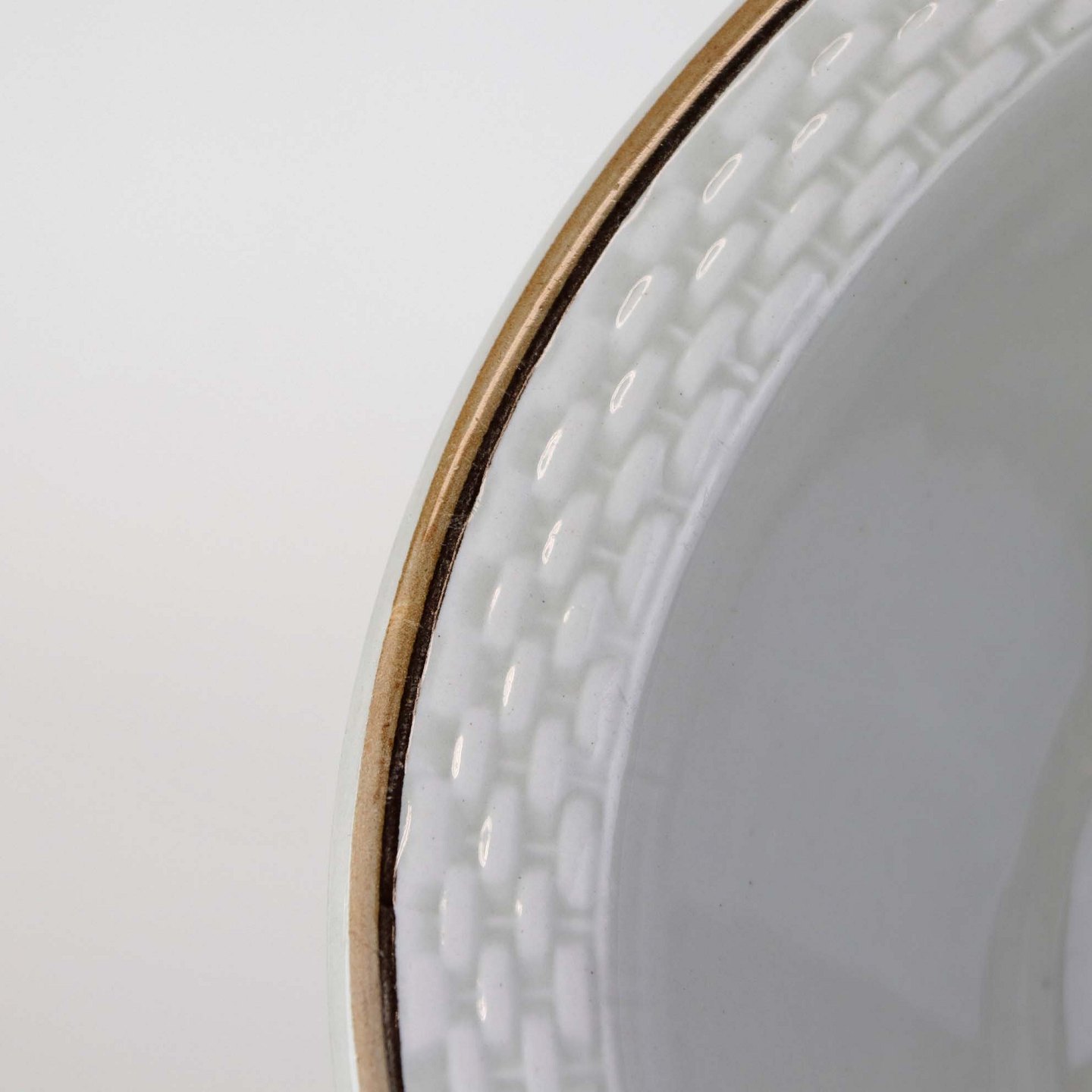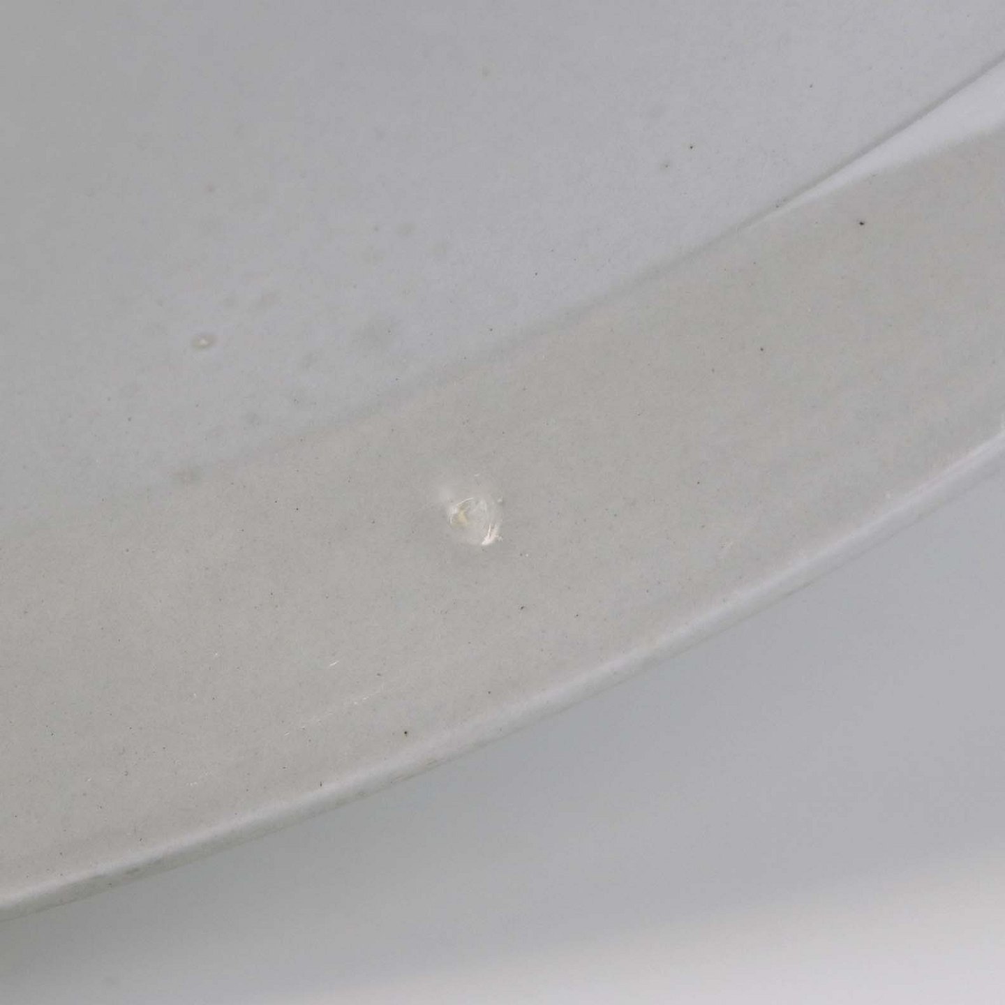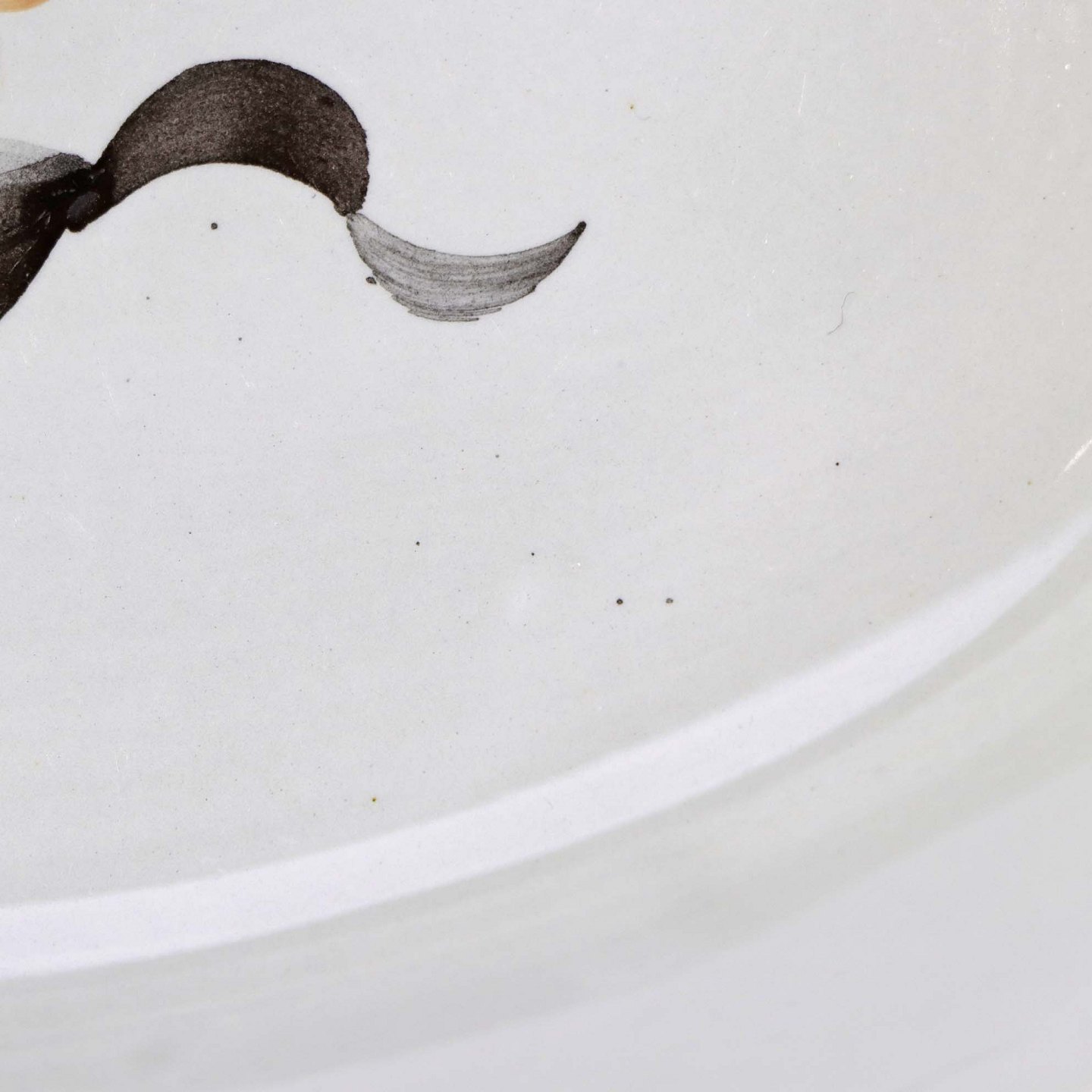 Fremstår med sorte nister under glasuren og ujævnheder i glasuren.