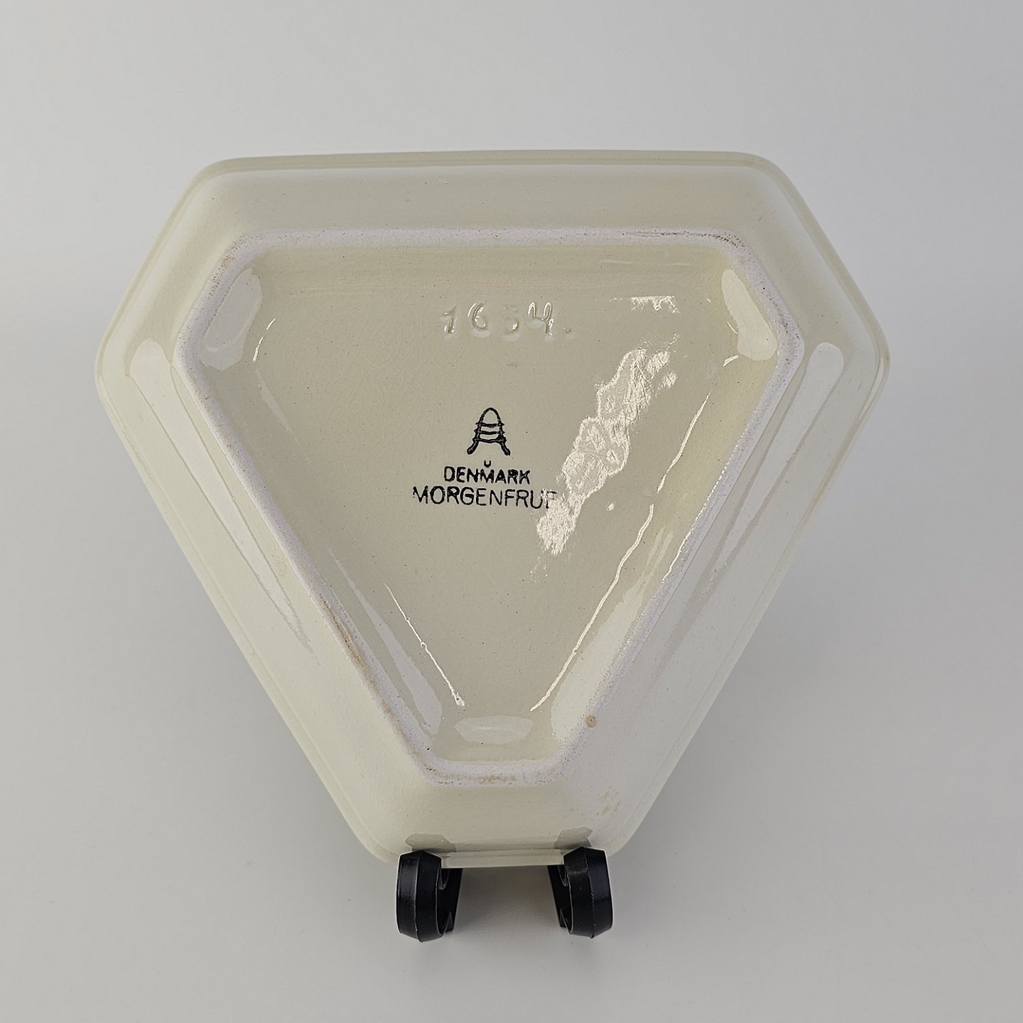 Plat de menage fad til salt, peber og sennep i fajance fra stellet Morgenfrue