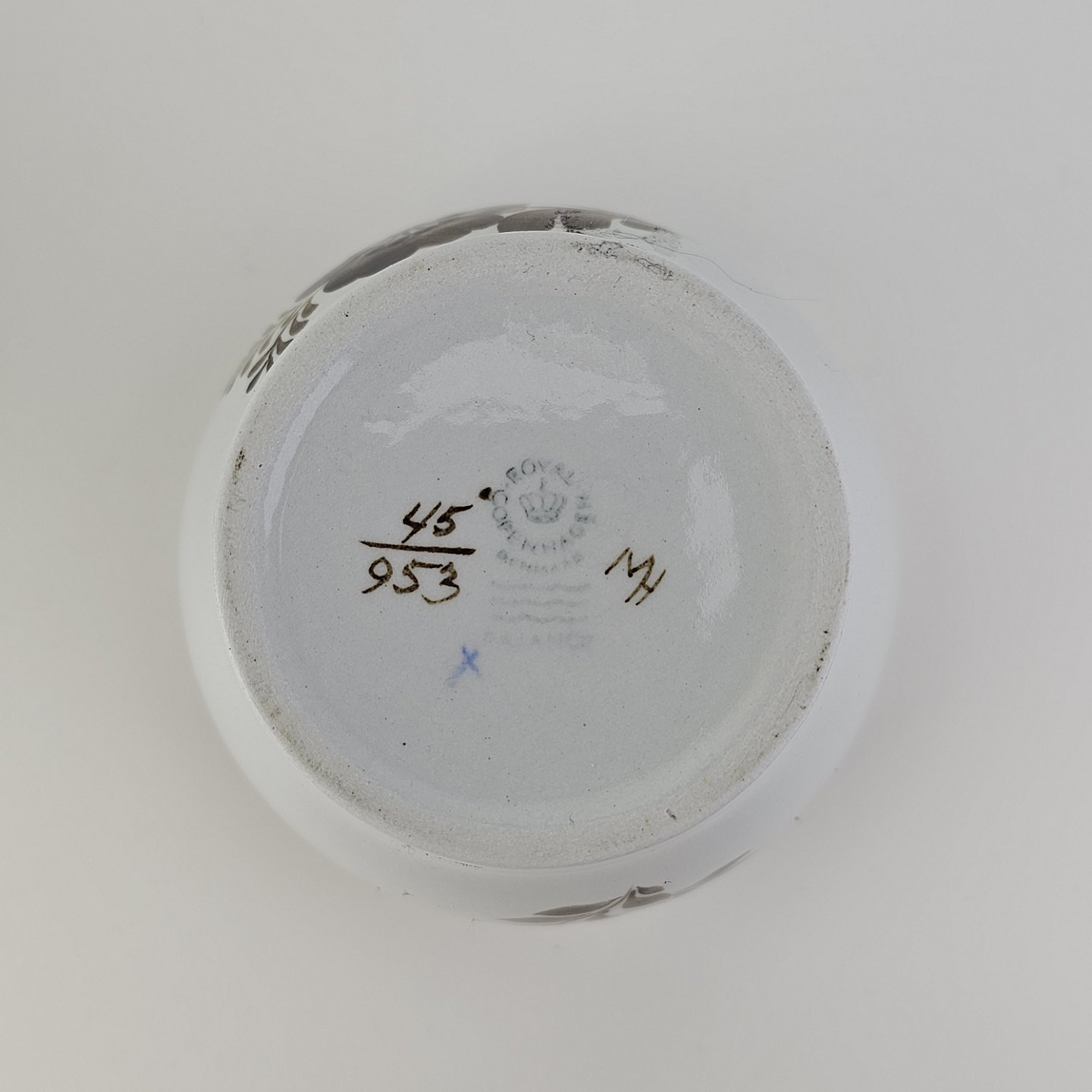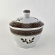 Sukkerskål med låg i fajance fra stellet Brun Tranquebar fra år 1919