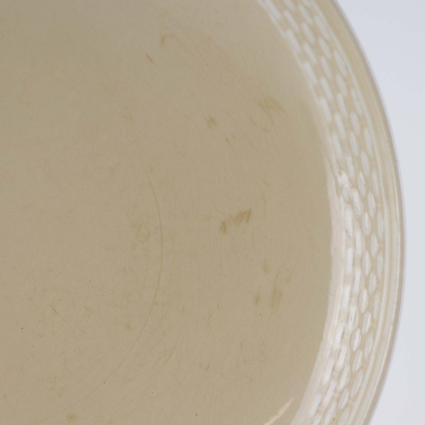 Sandfarvet fajancestel i stelform Viktoria II - Fletværk med dekoration af hvidt flet på gullig baggrund.