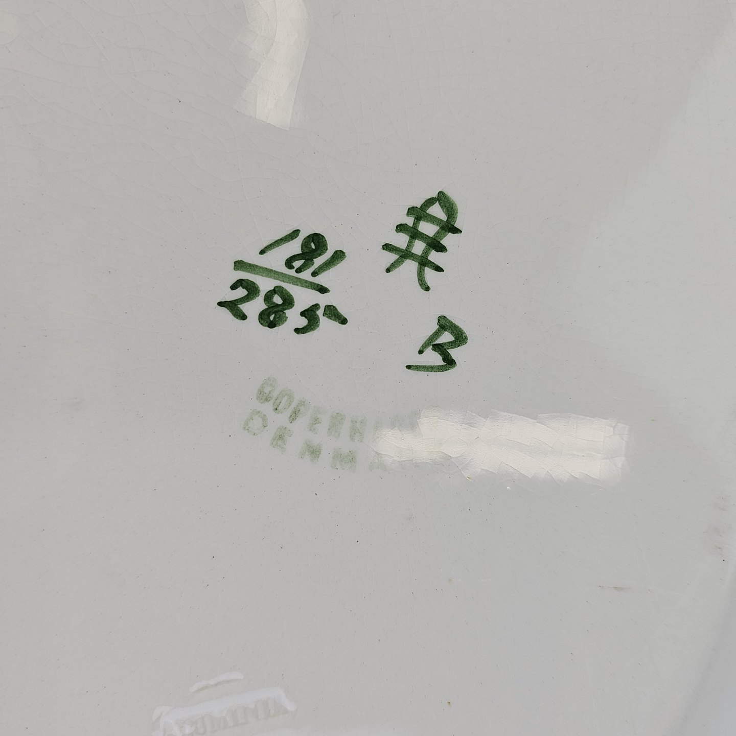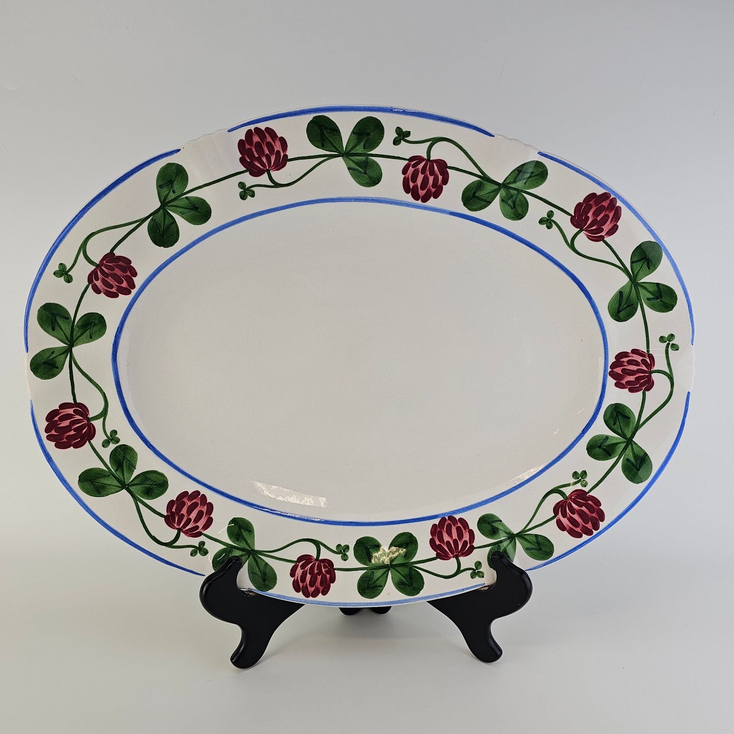 Ovalt fad i kunstfajance fra stellet Kløver. Nr. 181/285