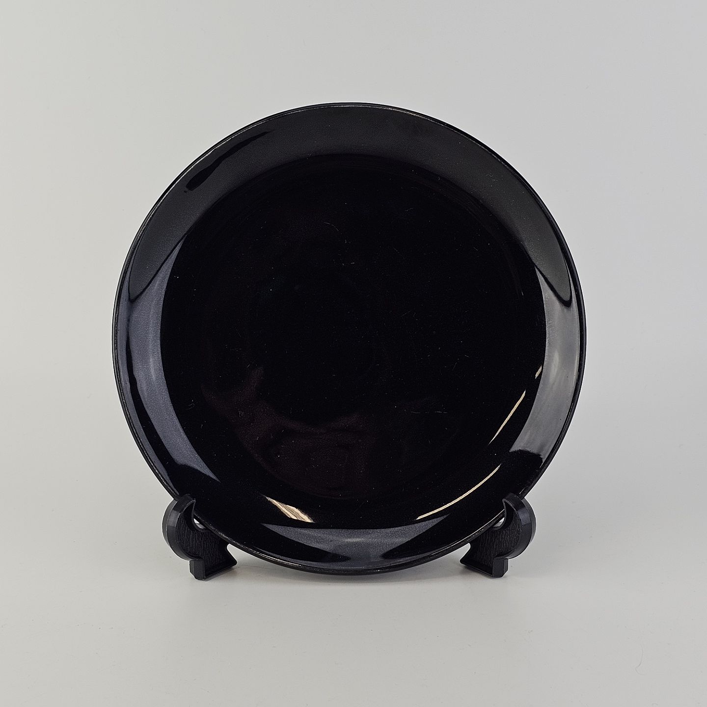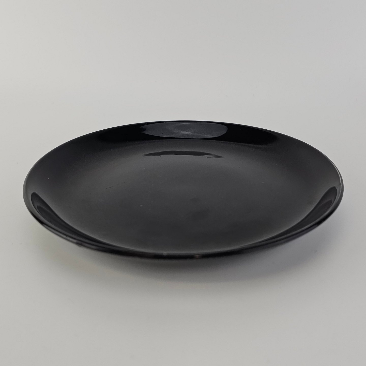 Fremstår med to mærker på bagsiden, som er holdemærker fra glaseringsprocessen