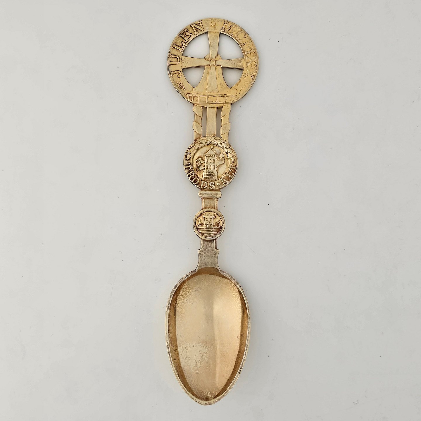 Juleske for år 1920 i forgyldt sterling sølv med motiv af Dybbøl Mølle
