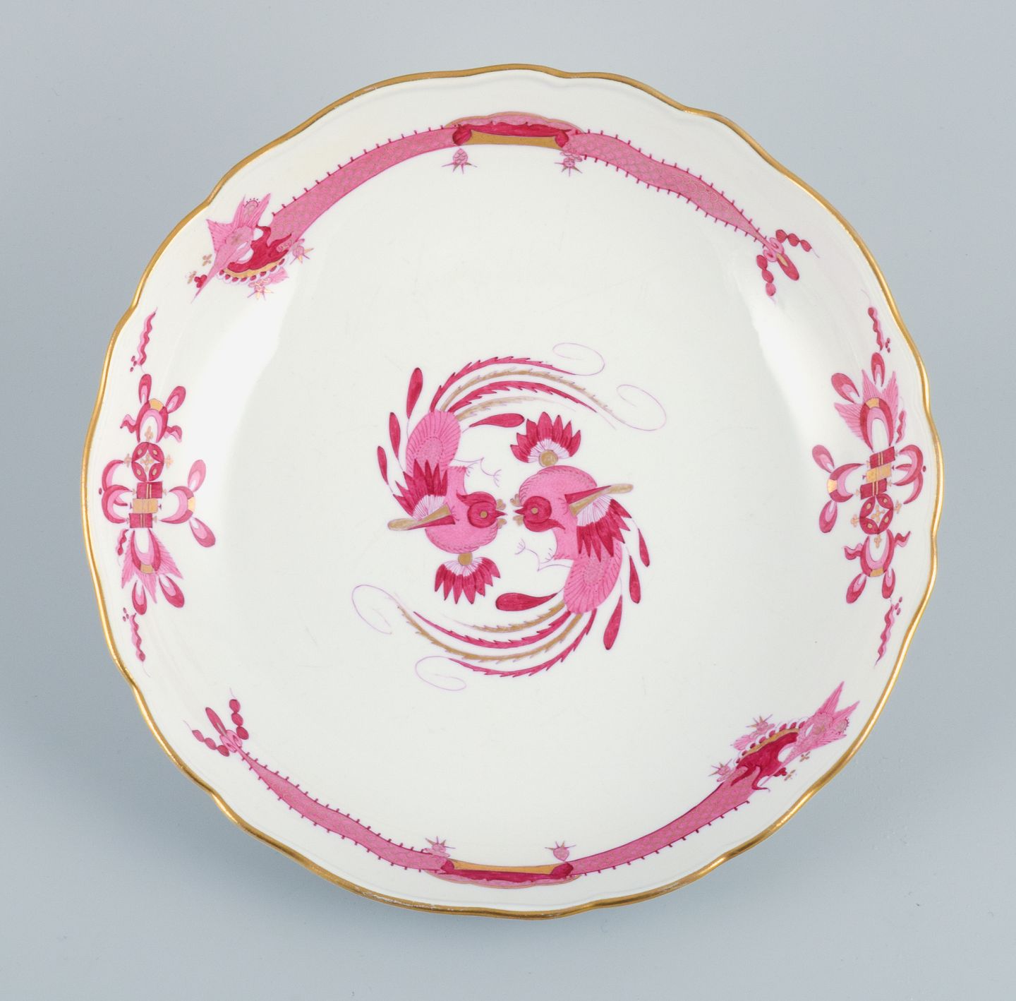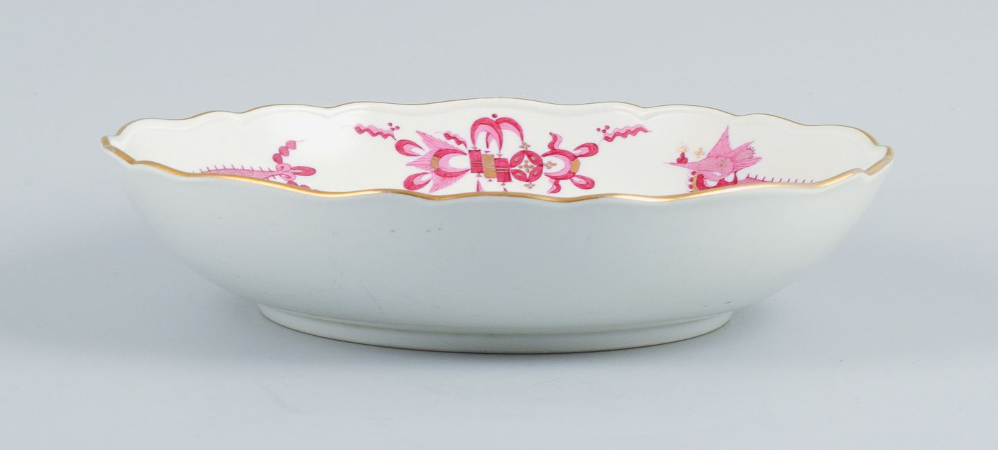 Meissen, Germany, Rich Court Dragon, large round bowl in purple with gold decoration. Hand painted. Approx. 1920. Marked. First factory quality. In perfect condition. Dimensions: D 27.7 x H 6.0 cm.