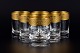 Rimpler Kristall, Zwiesel, Germany, six mouth blown crystal shot glasses with gold rim decorated with grapes and vine leaves.