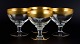 Rimpler Kristall, Zwiesel, Germany, four mouth-blown crystal champagne glasses with gold rim decorated with grapes and vine leaves. 1960s. In perfect condition. Dimensions: H 10.5 x 10.0 cm.