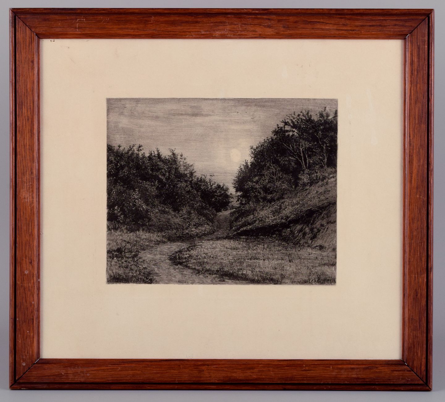 Carl Bloch (1834–1890). Etching of a moonlit summer evening.